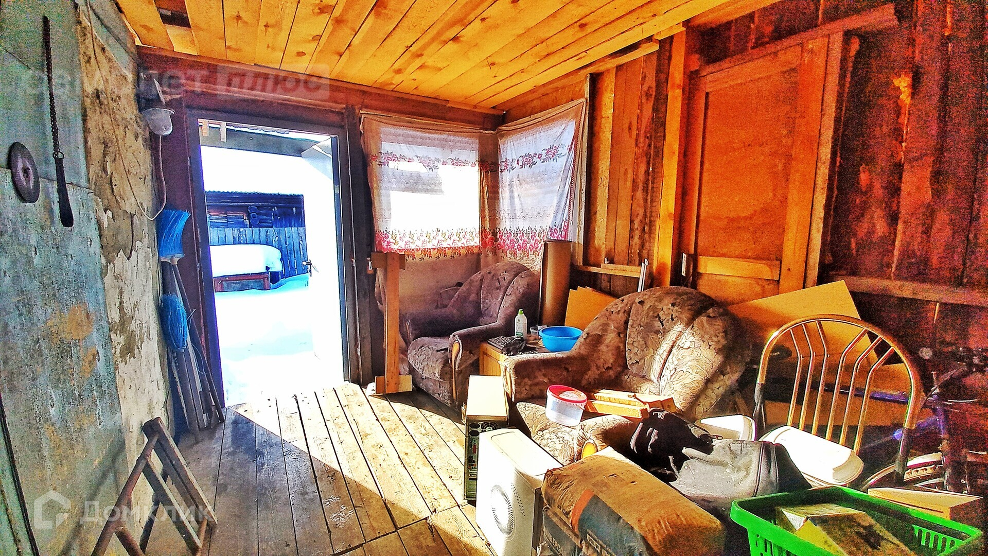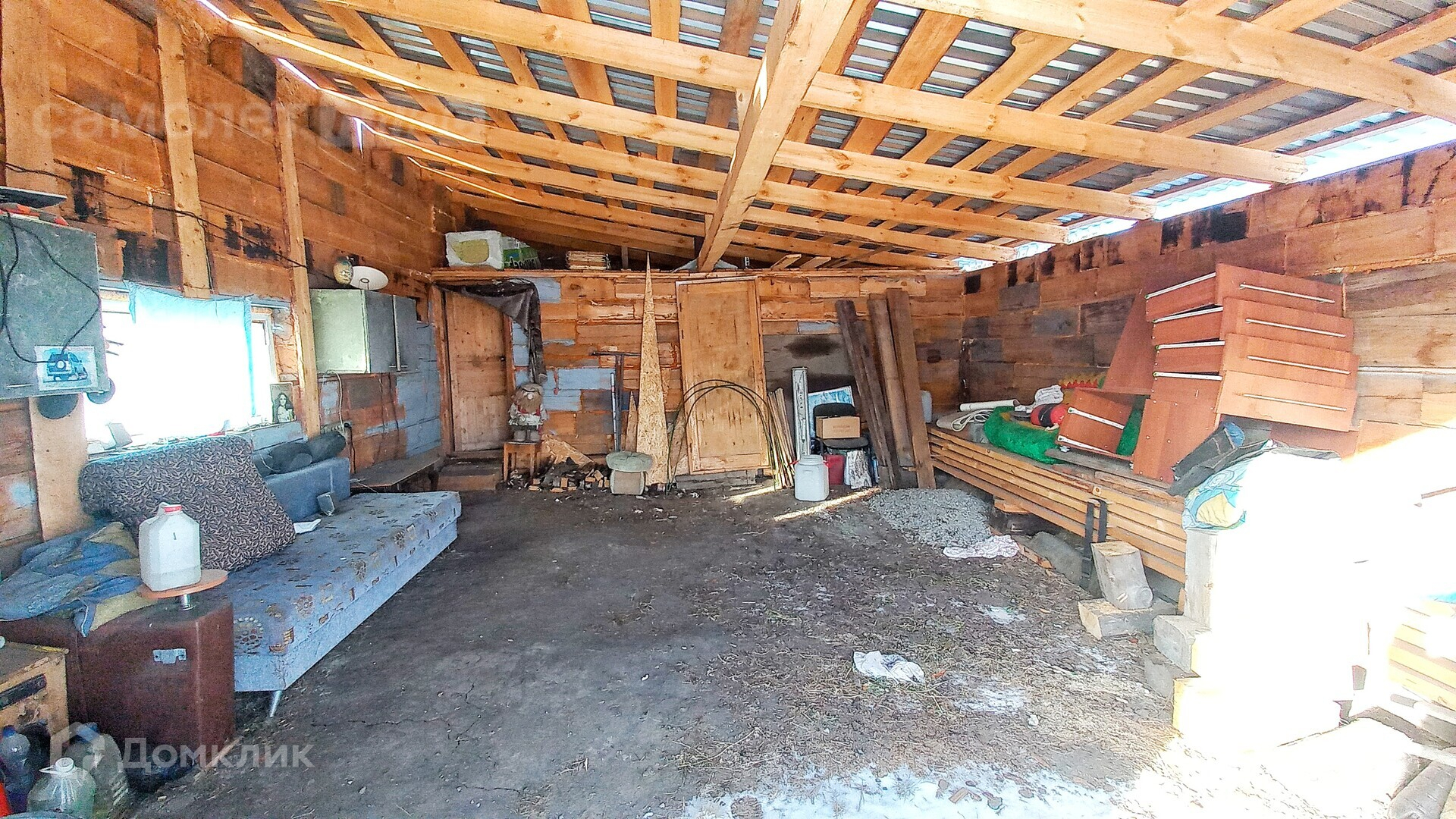 Большой гараж 6х6, уютная просторная баня 4х6 с зоной для отдыха. Имеется навес, под ним расположен уличный туалет, место для хранения бытовых мелочей. Материал для завершения пристроя остается в подарок будущему обладателю дома.