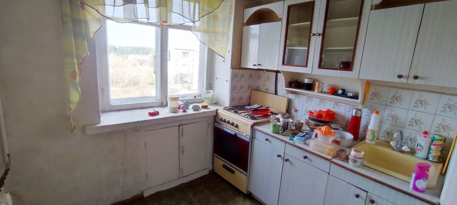Квартира светлая и теплая, требует косметического ремонта. Обе комнаты большие по своей площади. Одна из них проходная.  Окна выходят во двор и на улицу. Спальная выходит на солнечную сторону.