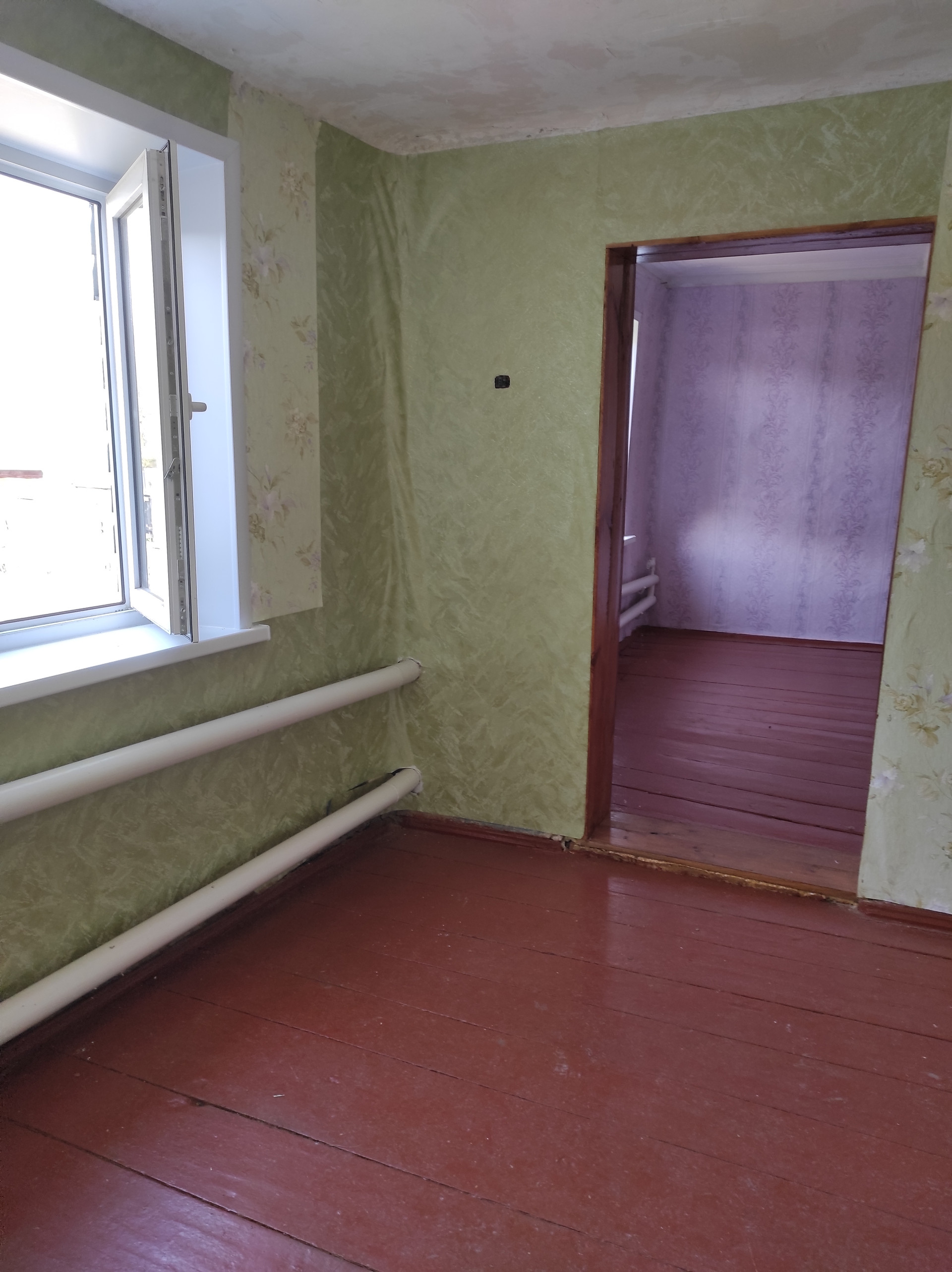 Часть дома на улице Космонавтов, общей площадью 27 м2, из которых гостиная комната – 12.3 м2, спальня – 8.8 м2, кухня 6м2, а также есть новый пристрой, где можно оборудовать прихожую и ванную комнату.