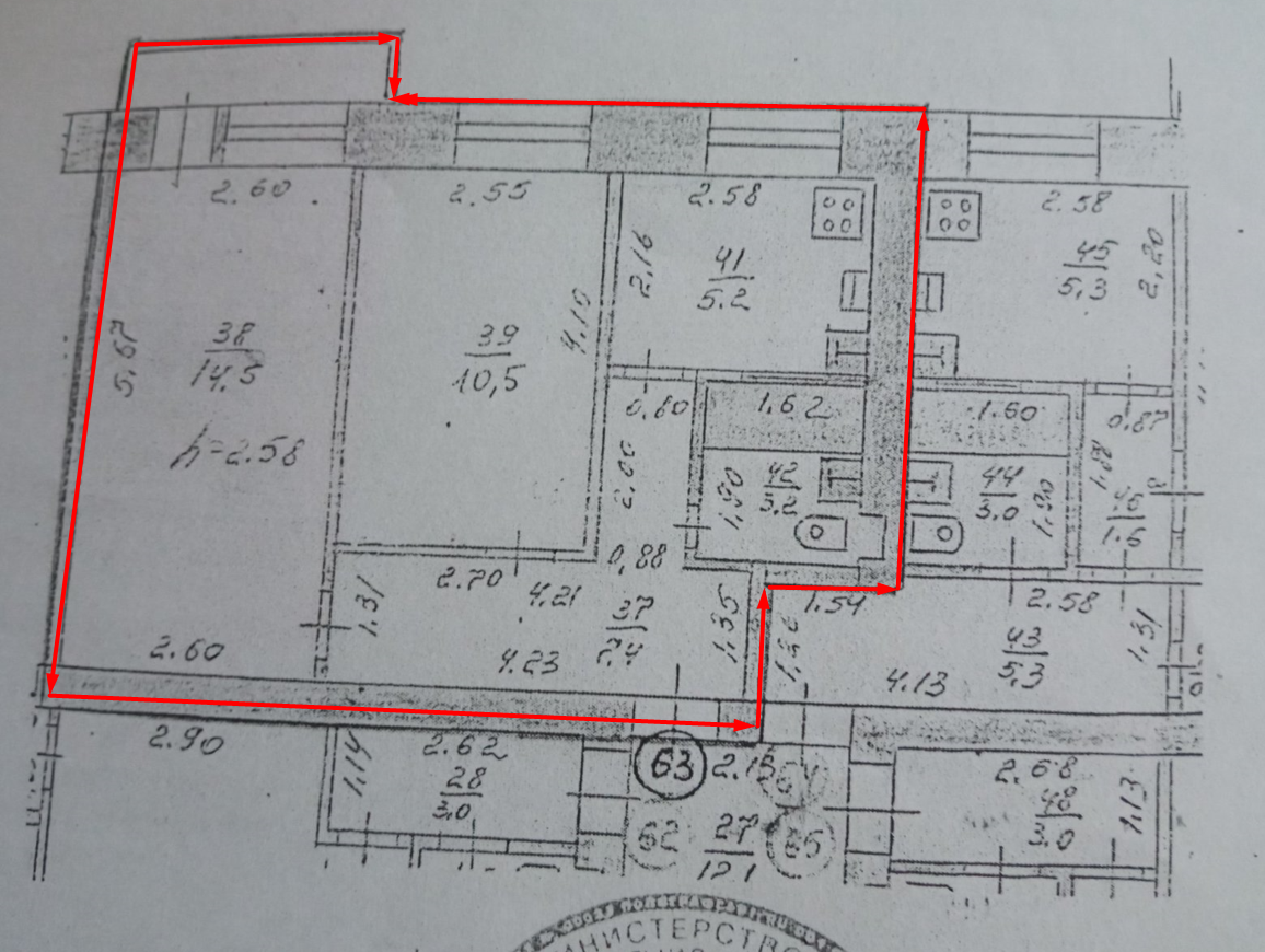 Общая площадь 42 м2