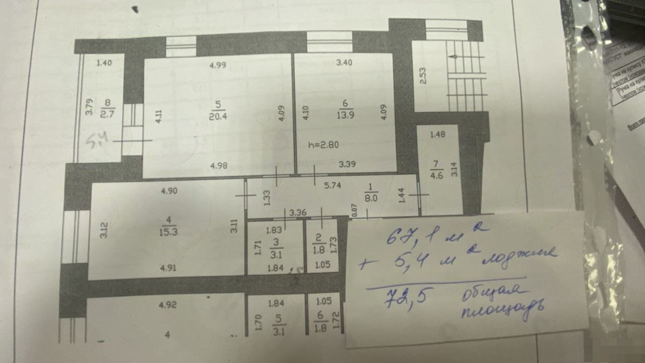 Высота потолков 2.8 м