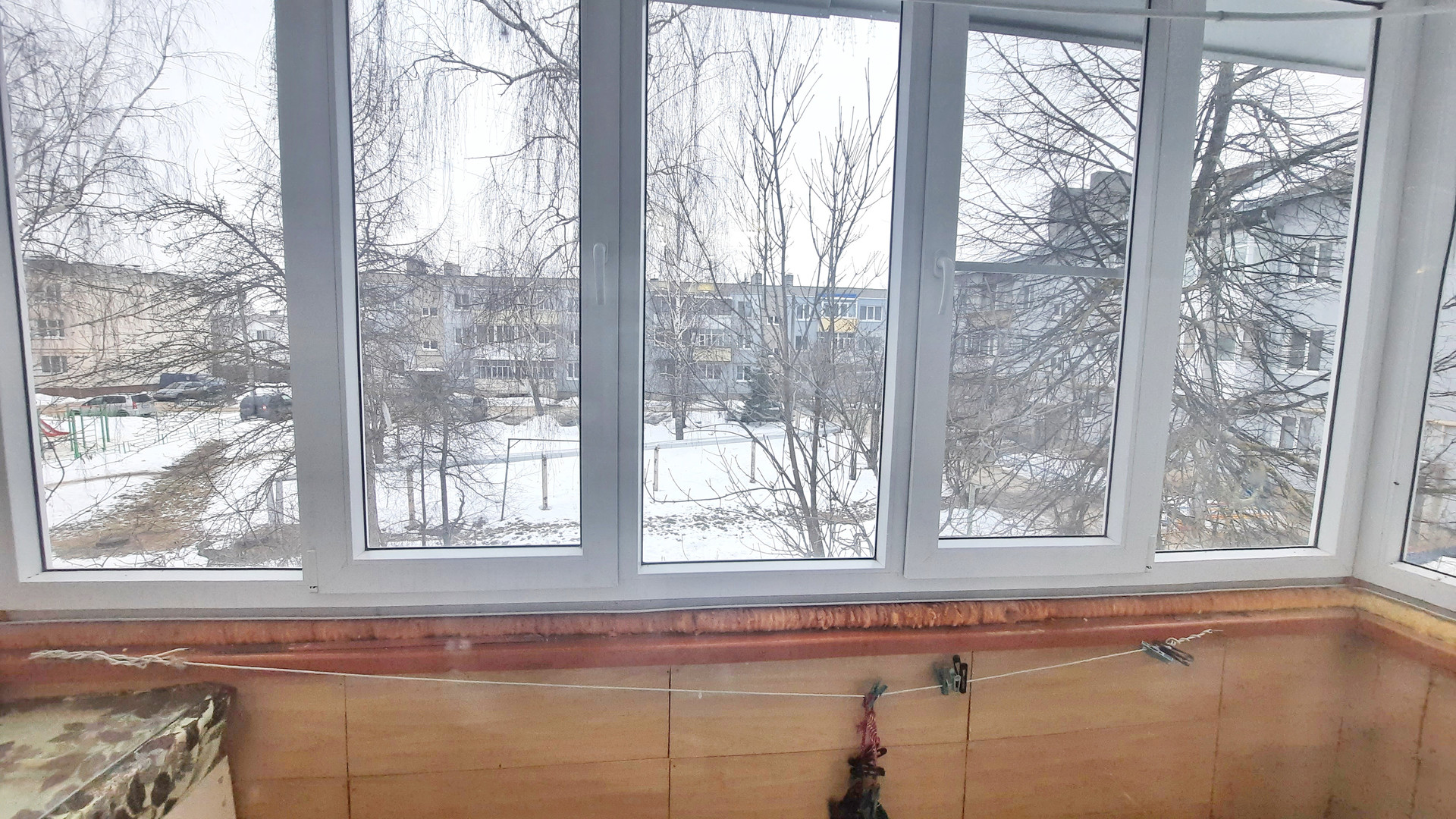 Балкон с пластиковым остеклением.