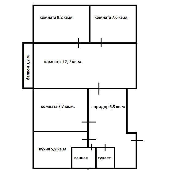 Общая площадь 58 м2