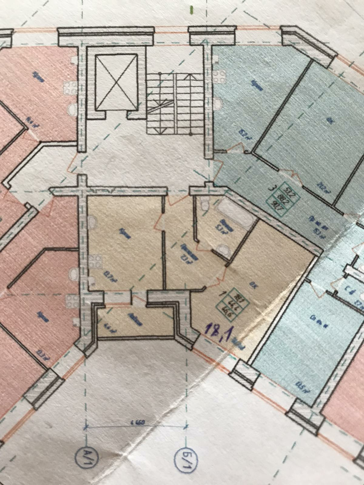 Жилая площадь 44.4 м2