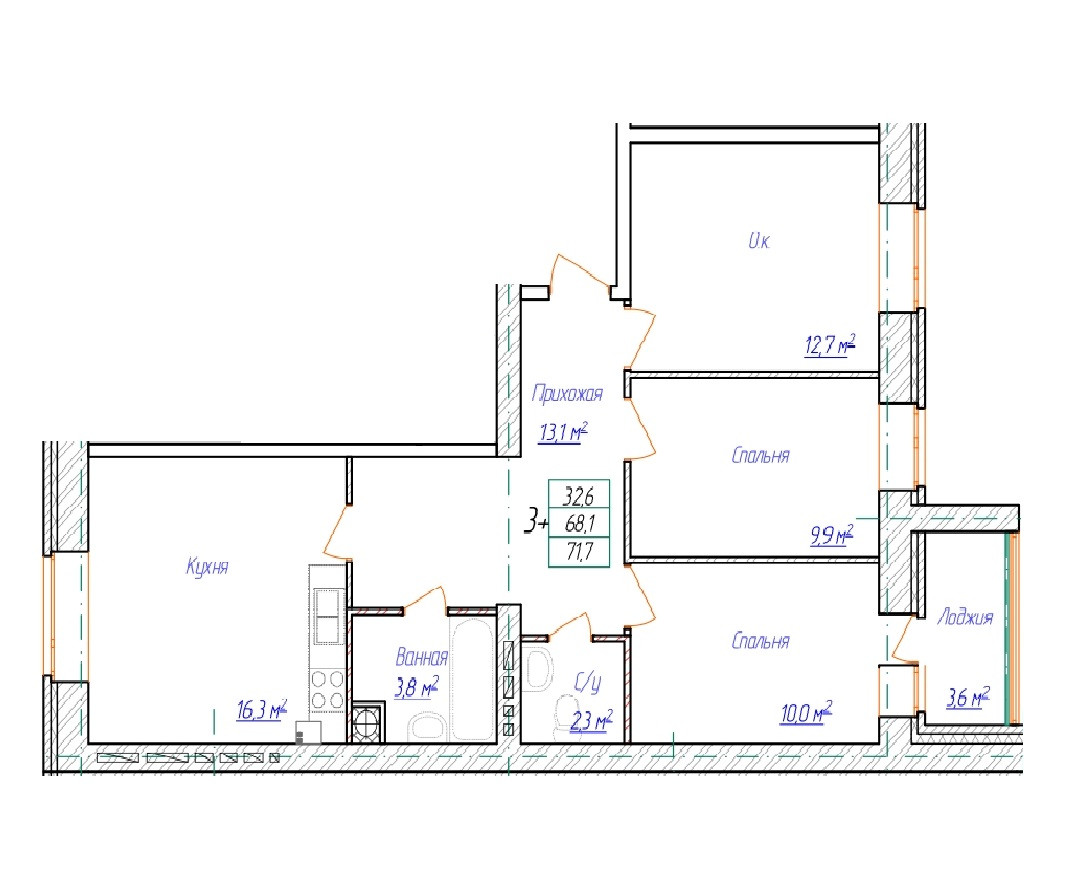 Общая площадь 71.7 м2