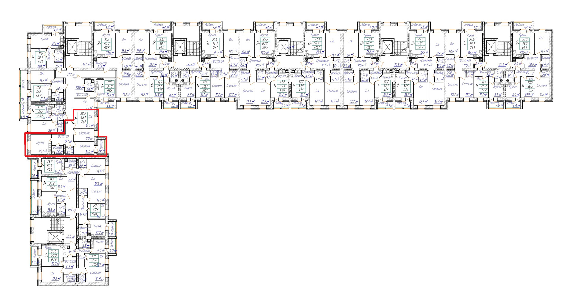 -Богатая квартирография, разнообразий метражей и планировок