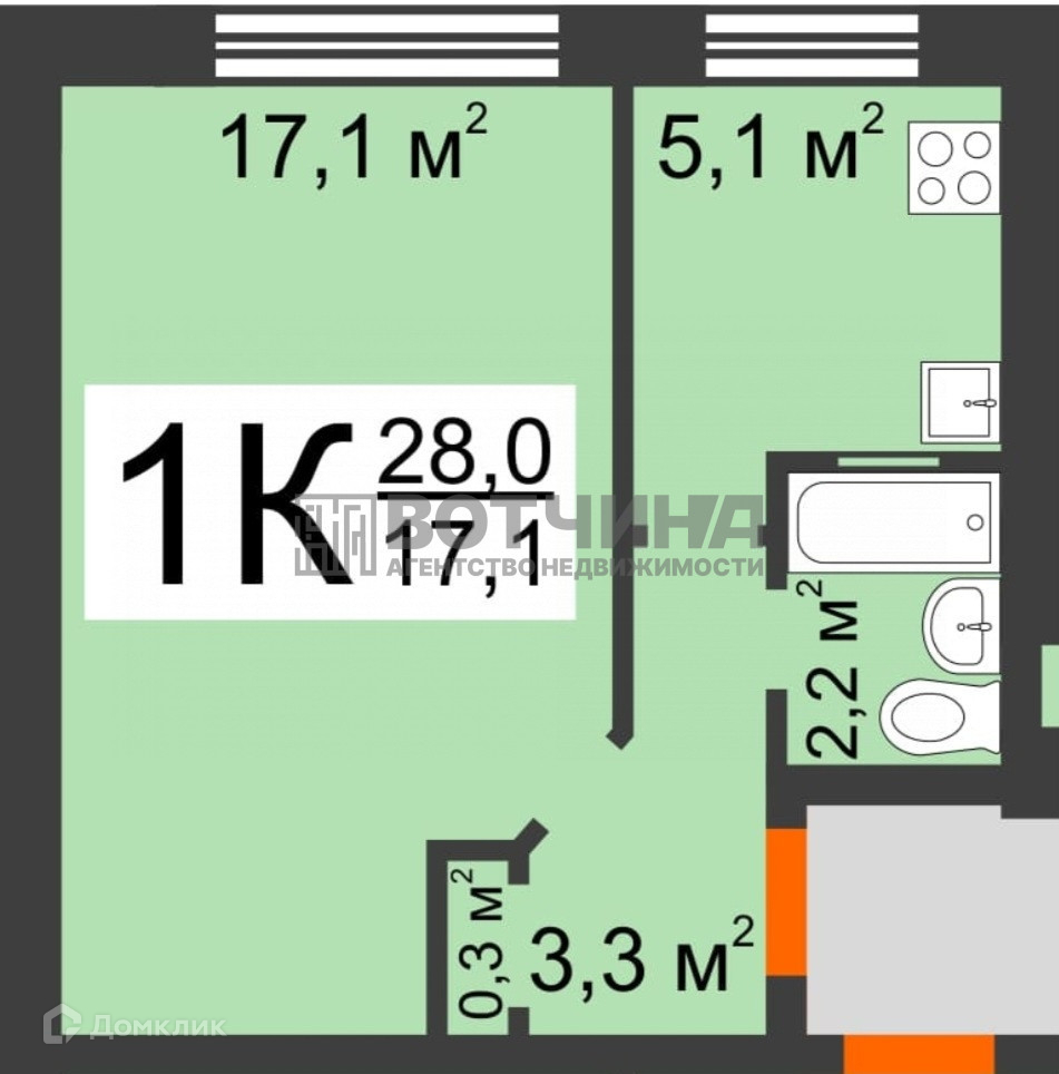 Общая площадь 28 м2