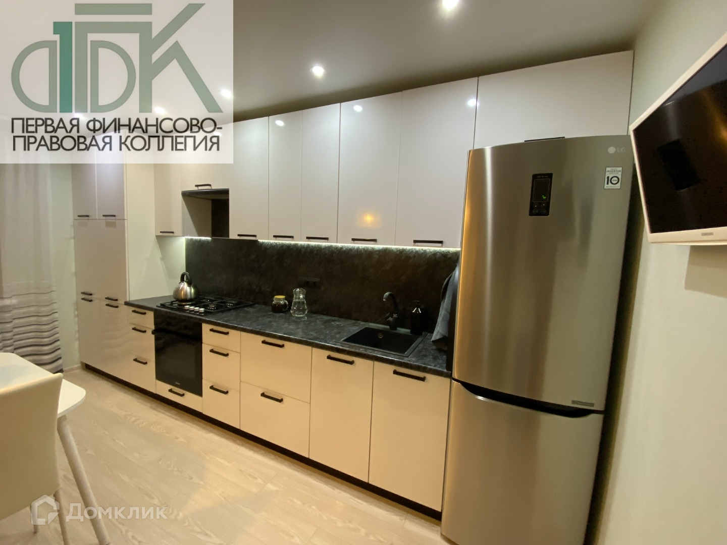 В квартире остается: кухонный гарнитур, духовой шкаф, варочная панель, вытяжка, кондиционер, большая встроенная гардеробная,