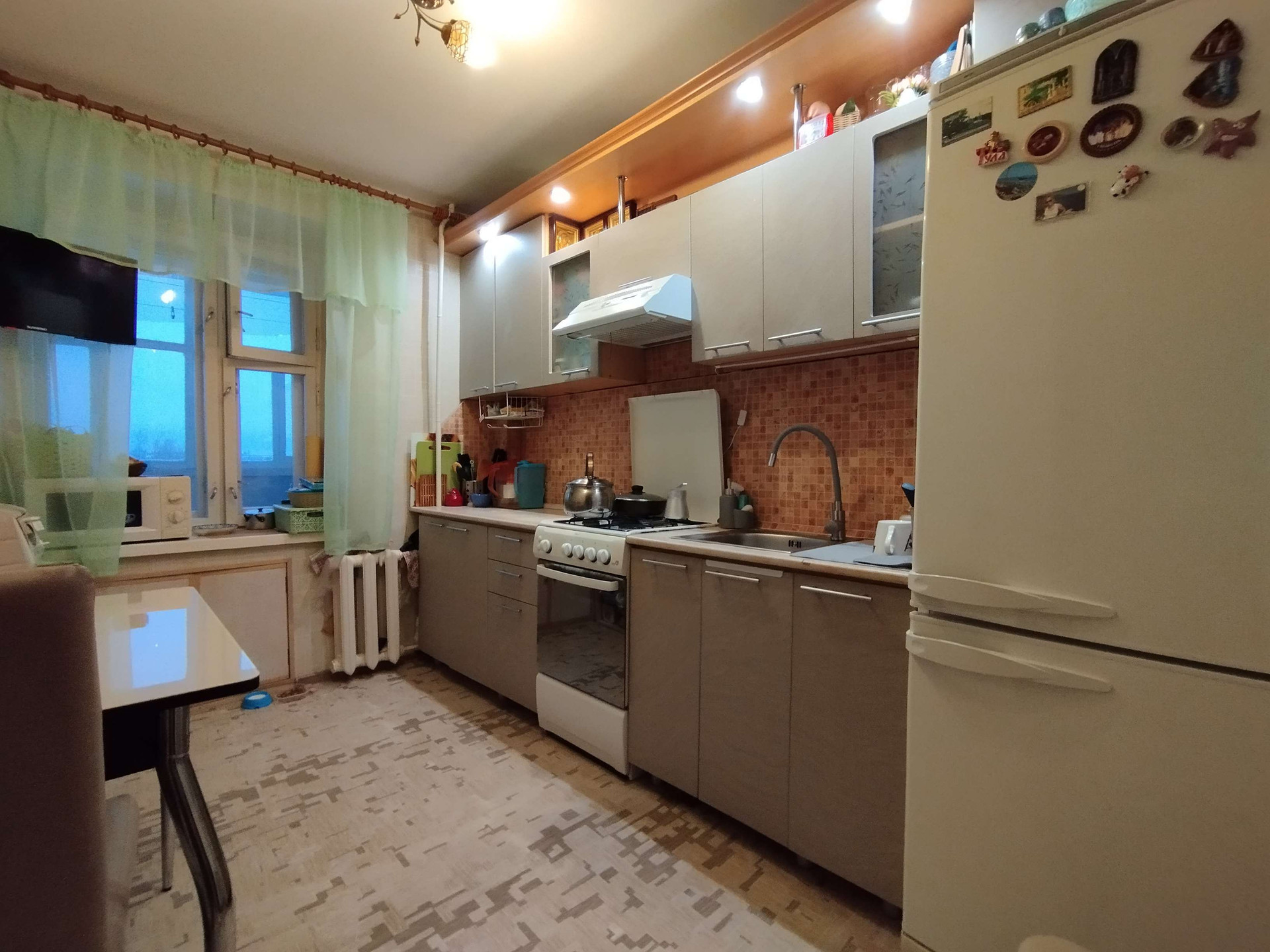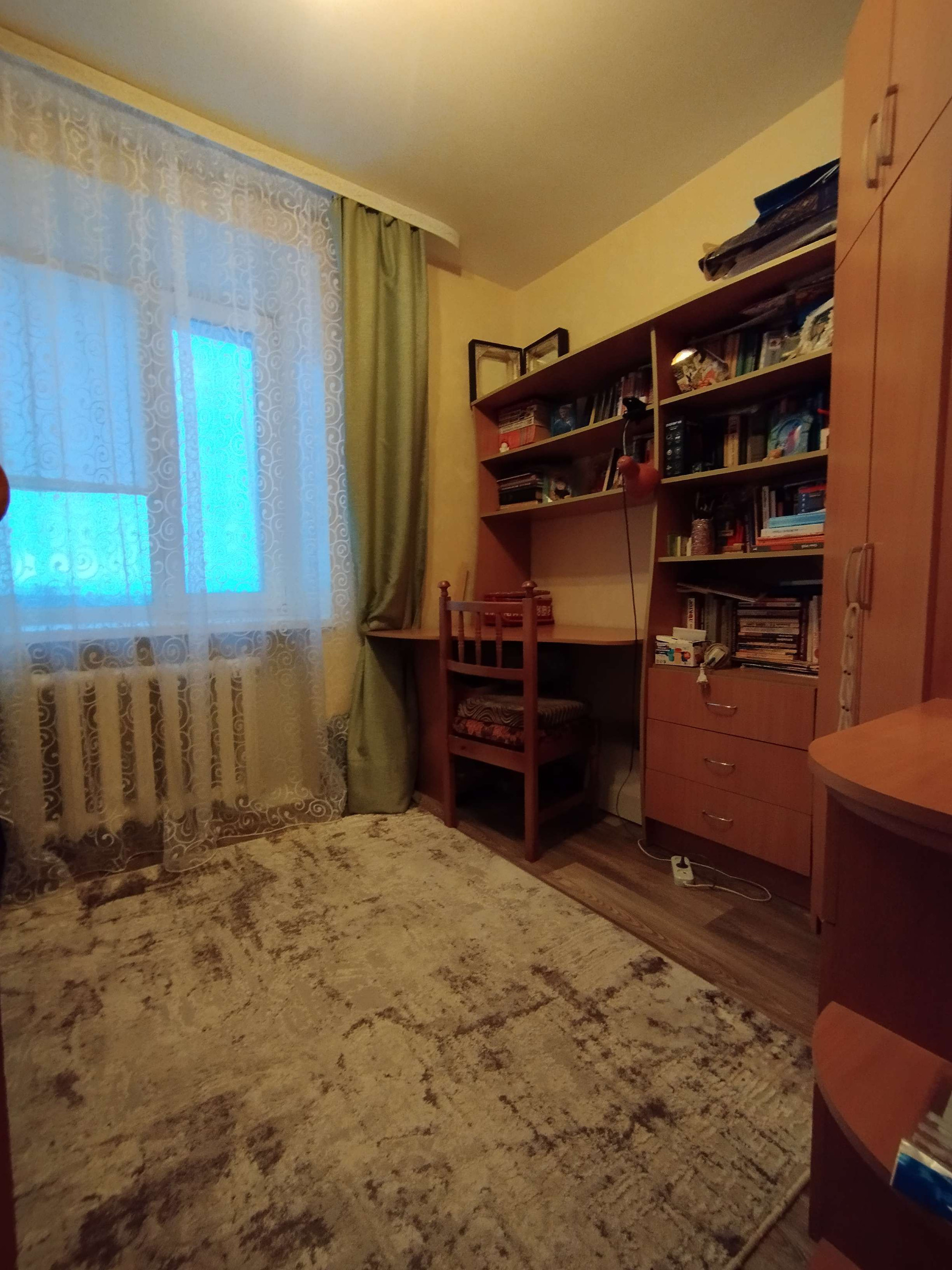 Продается уютная и очень теплая 4-х комнатная квартира  в спальном районе города. Все комнаты изолированы, просторная кухня, раздельный санузел. Лоджия 6 метров. Хороший ремонт. Встроенный кухонный гарнитур остается покупателям. В тамбуре на этаже индивидуальное подсобное помещение. Во дворе дома школа и детский сад.