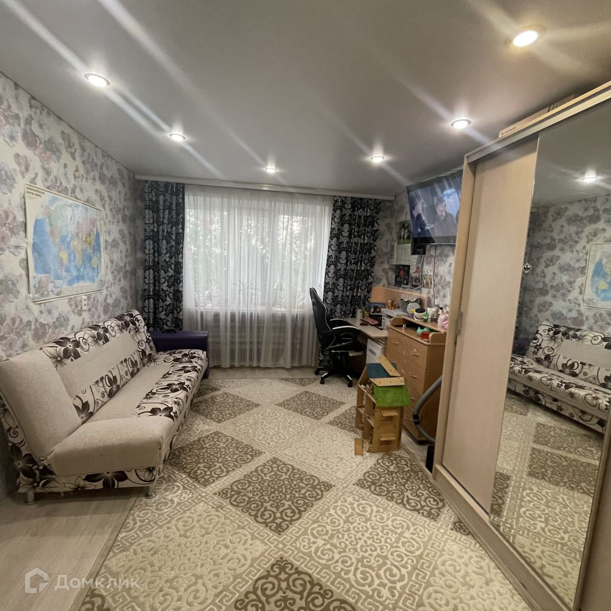 В квартире сделан стандартный ремонт, на кухне и в ванной комнате установлены современные плитка и сантехника. В комнате остаётся мебель: шкаф-купе, табуретка, диван. Экономичный вариант жилья позволит сэкономить на расходах, как при приобретении, так и в будущем.