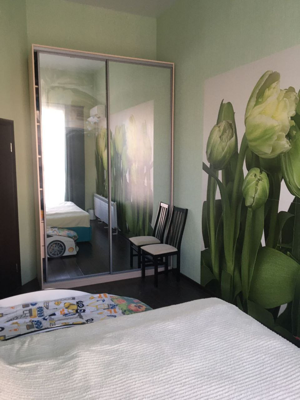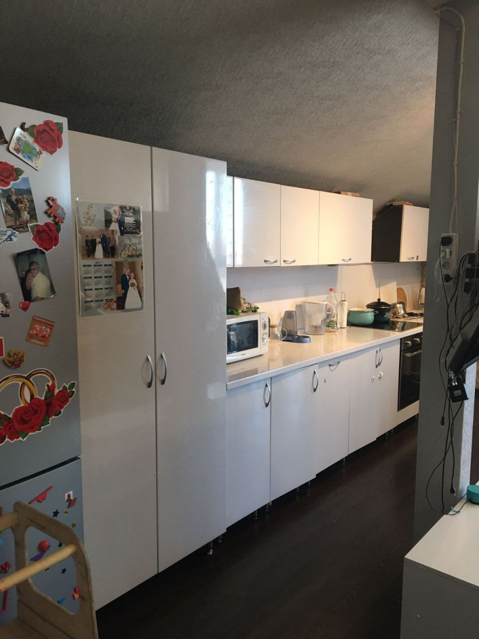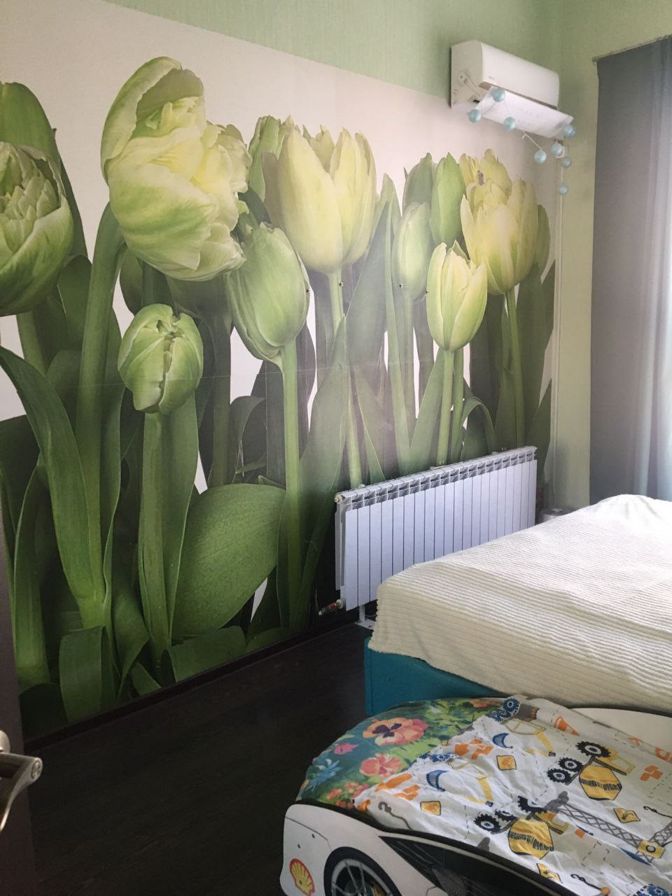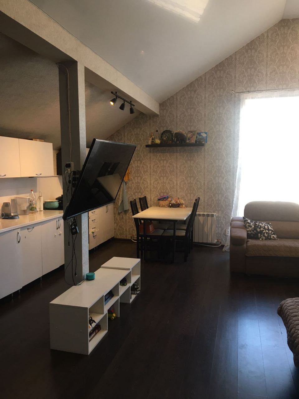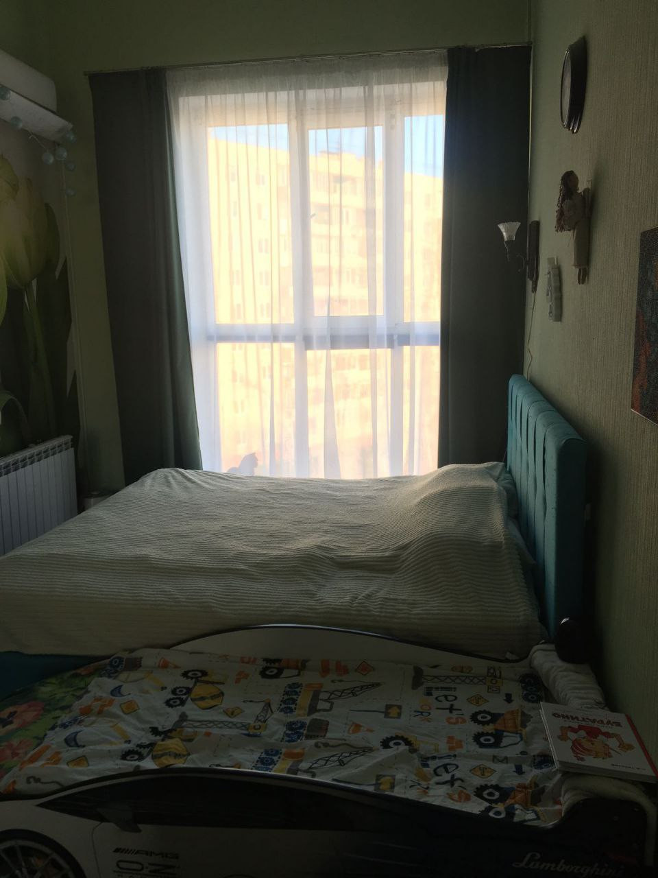 Остаётся кухонный гарнитур, кондиционер в спальне.