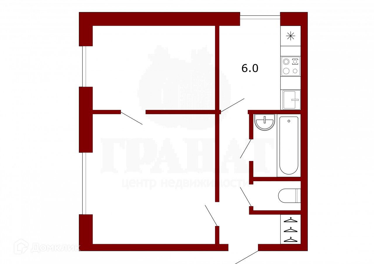 Жилая площадь 26.6 м2