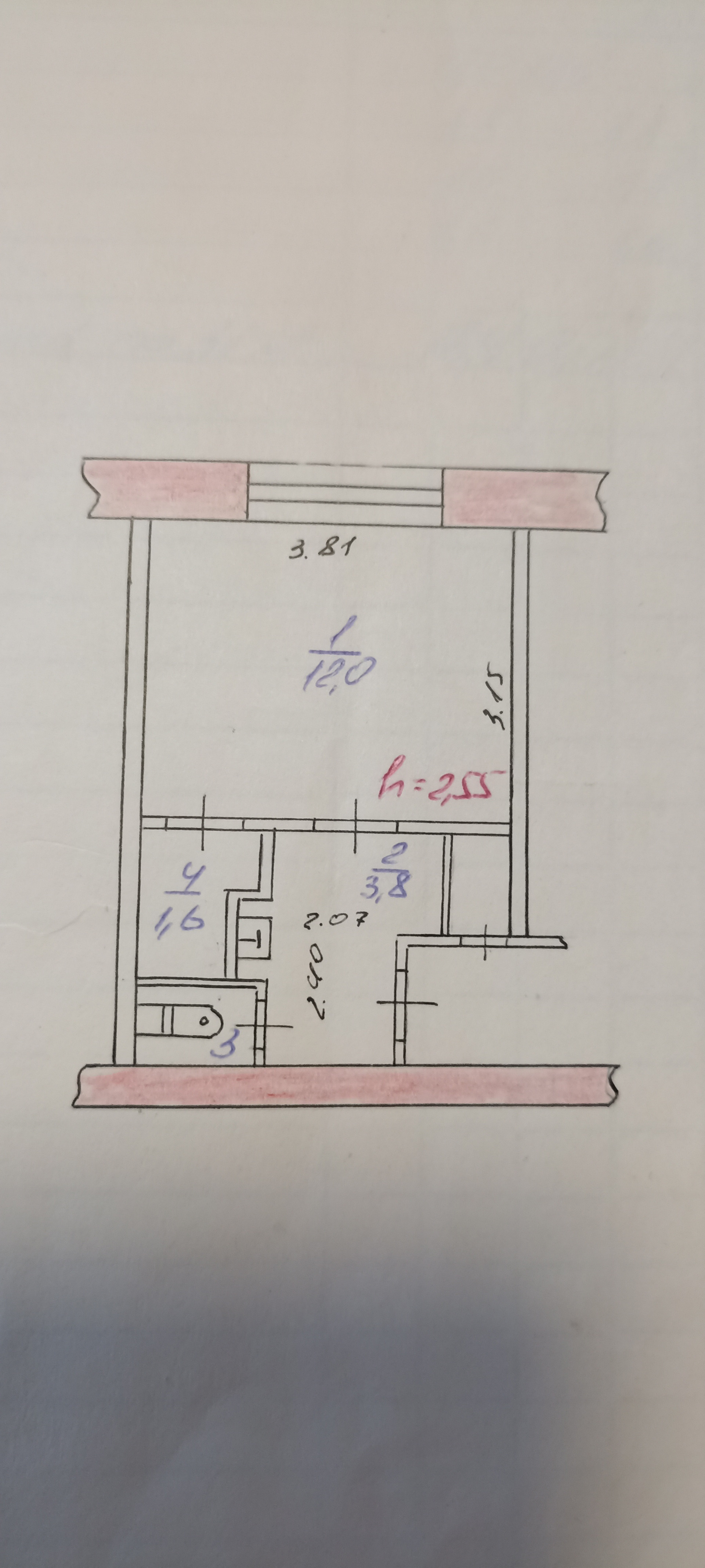 Площадь кухни 3.8 м2