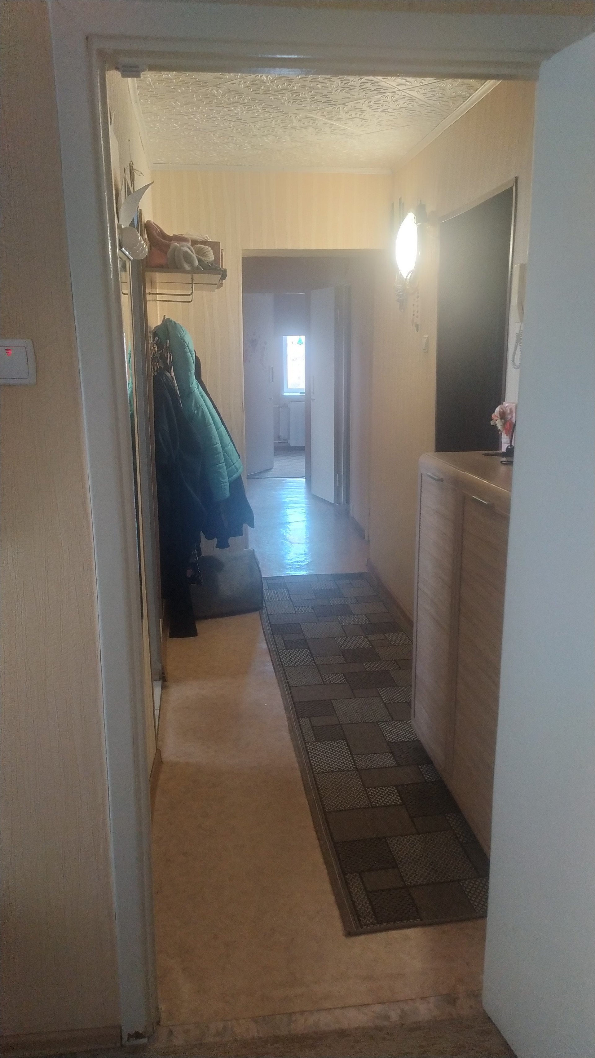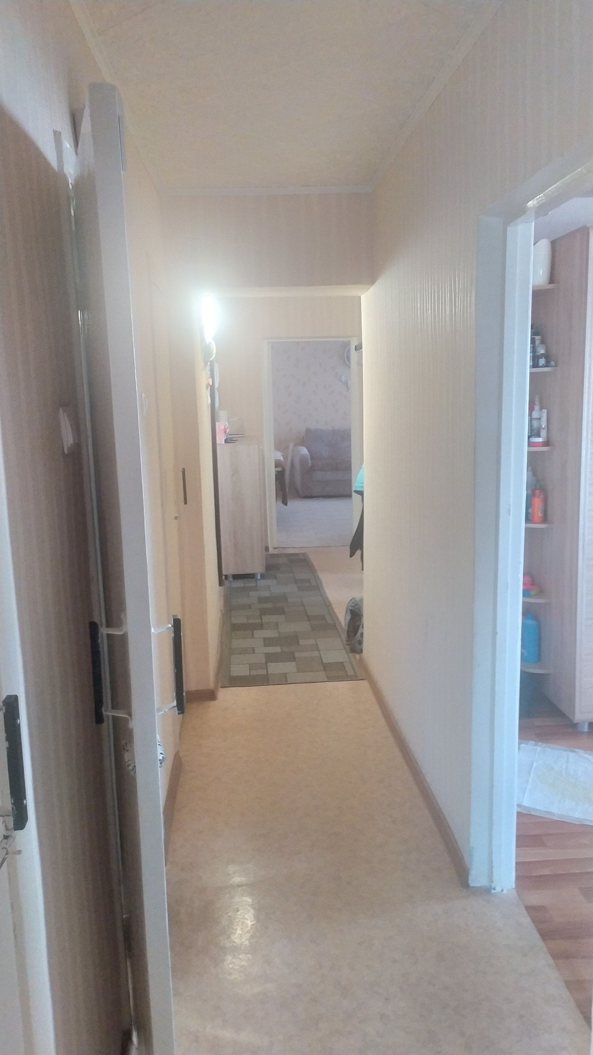 Перепланировка в 3 комнатную. Сан узел кафель. Все окна пластиковые. Два балкона зашиты пластиком. Рядом детский сад, школа.