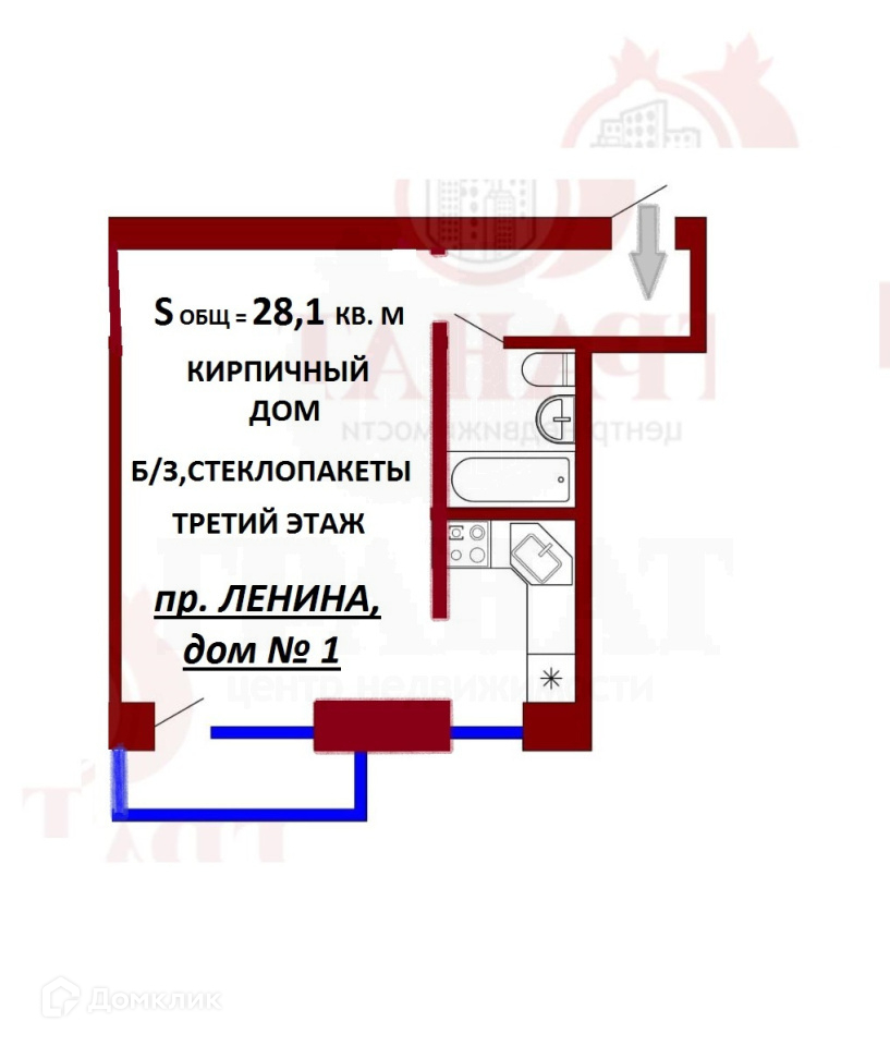 Общая площадь 28.1 м2