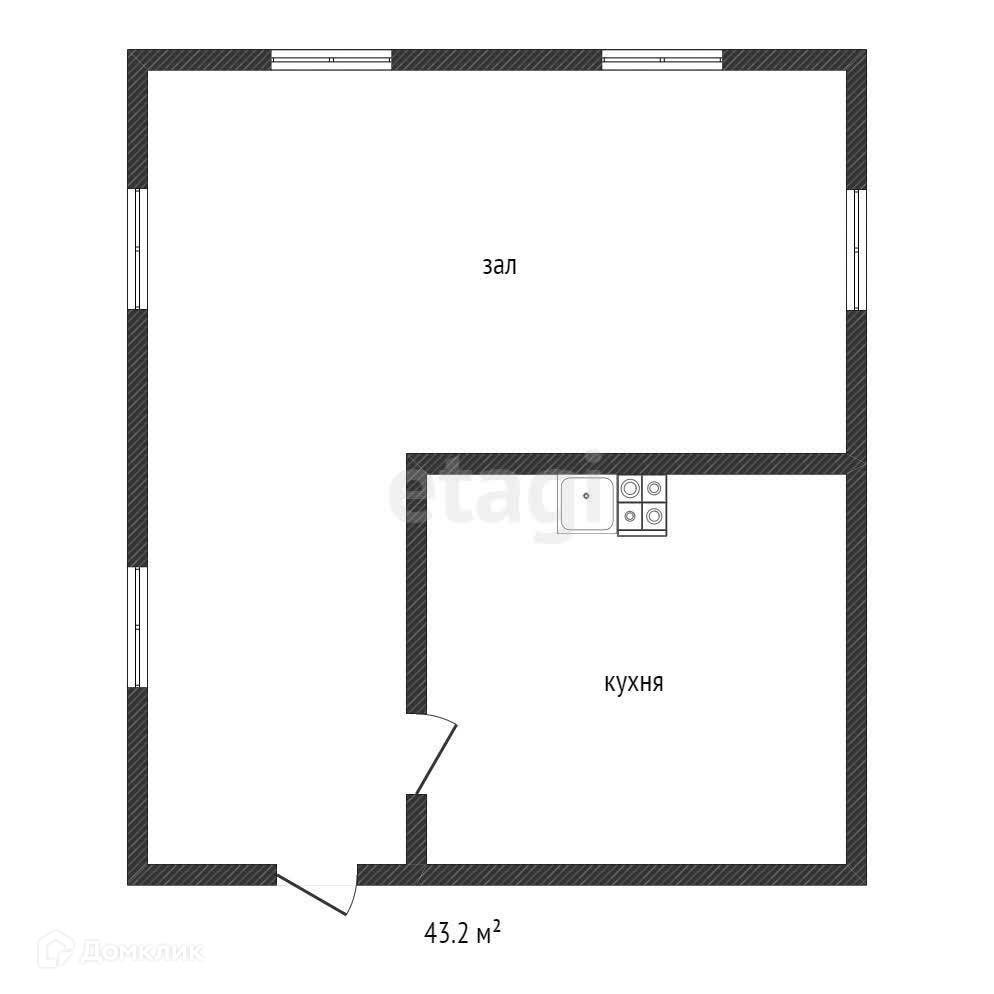 Общая площадь 43.2 м2