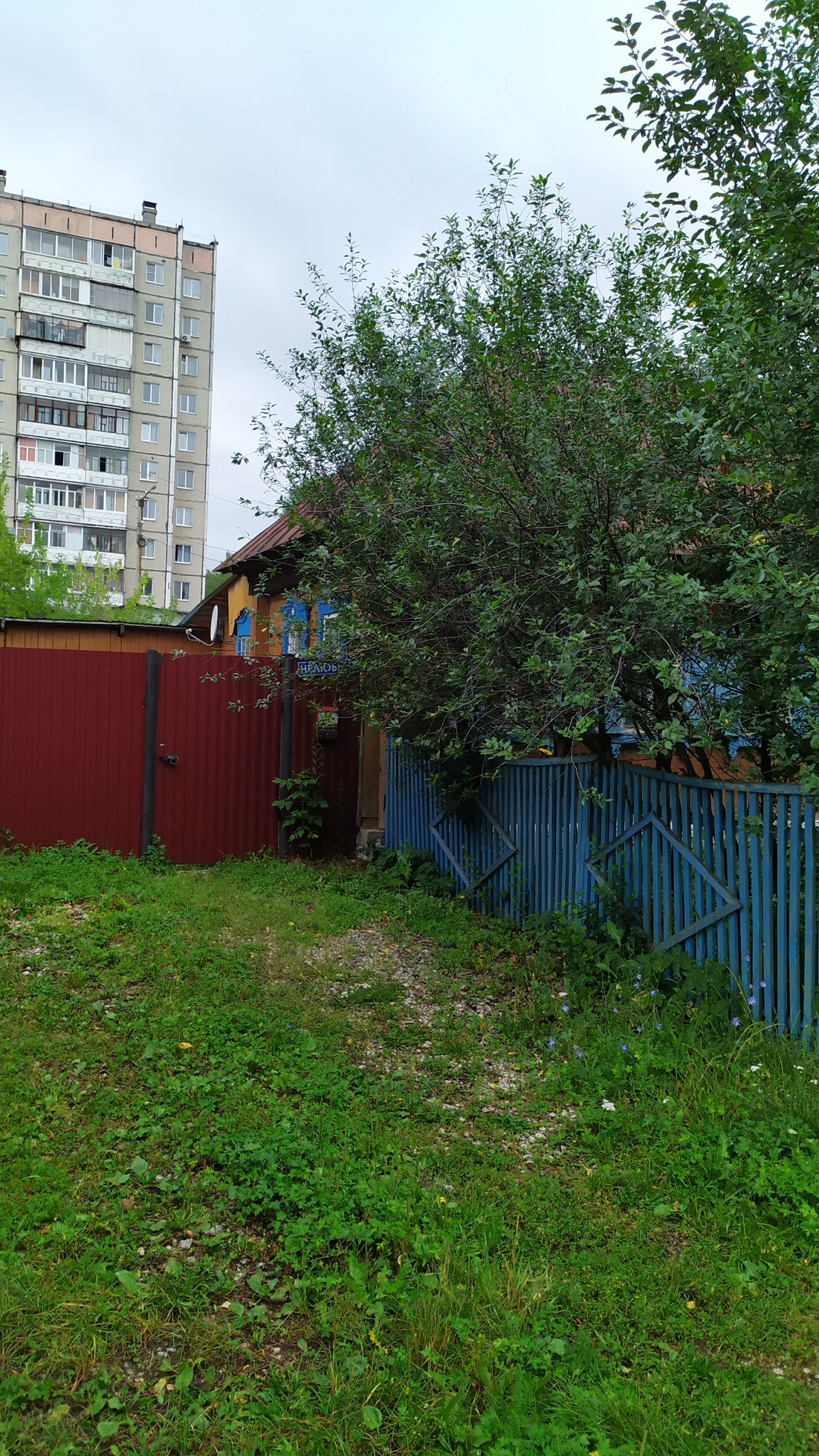 - участок огорожен по всему периметру, с фасадной части надёжный забор, широкая калитка;