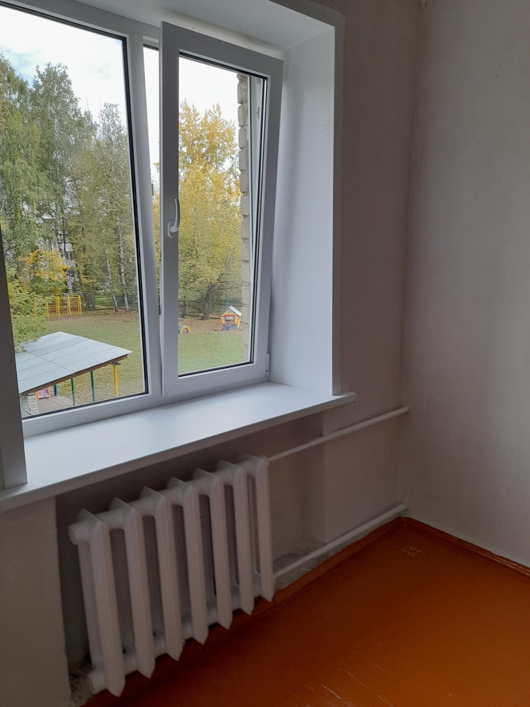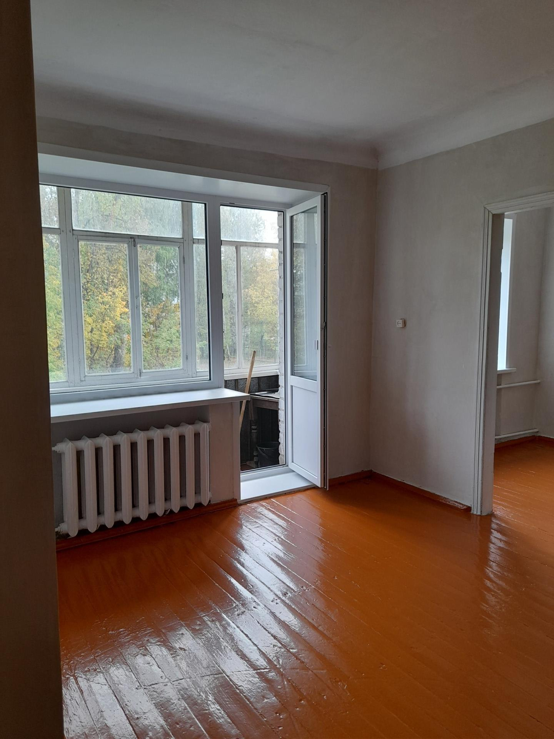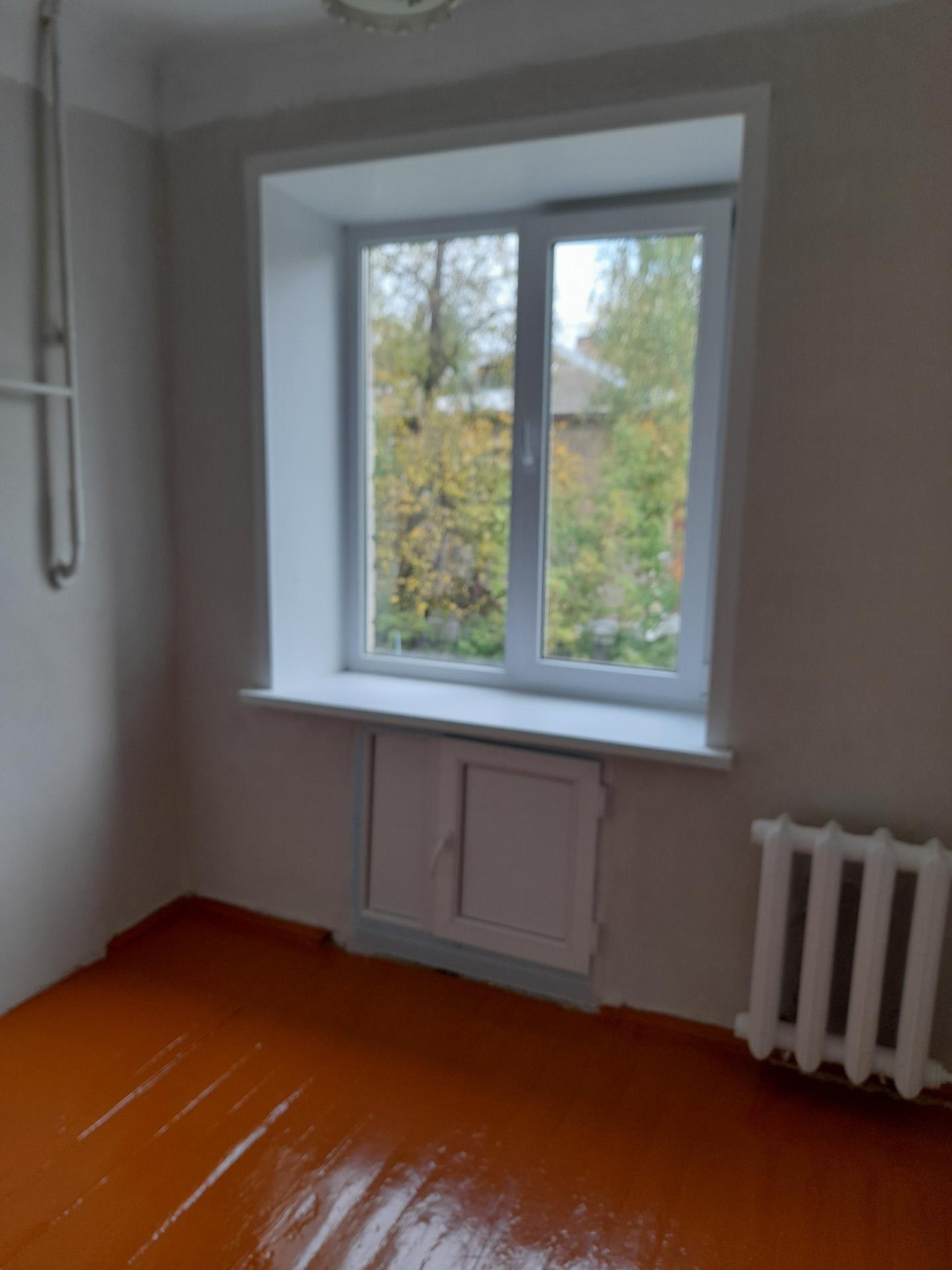 Стены оштукатурены.Пол деревянный в хорошем состоянии.