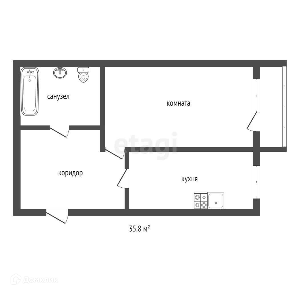 Общая площадь 35.8 м2