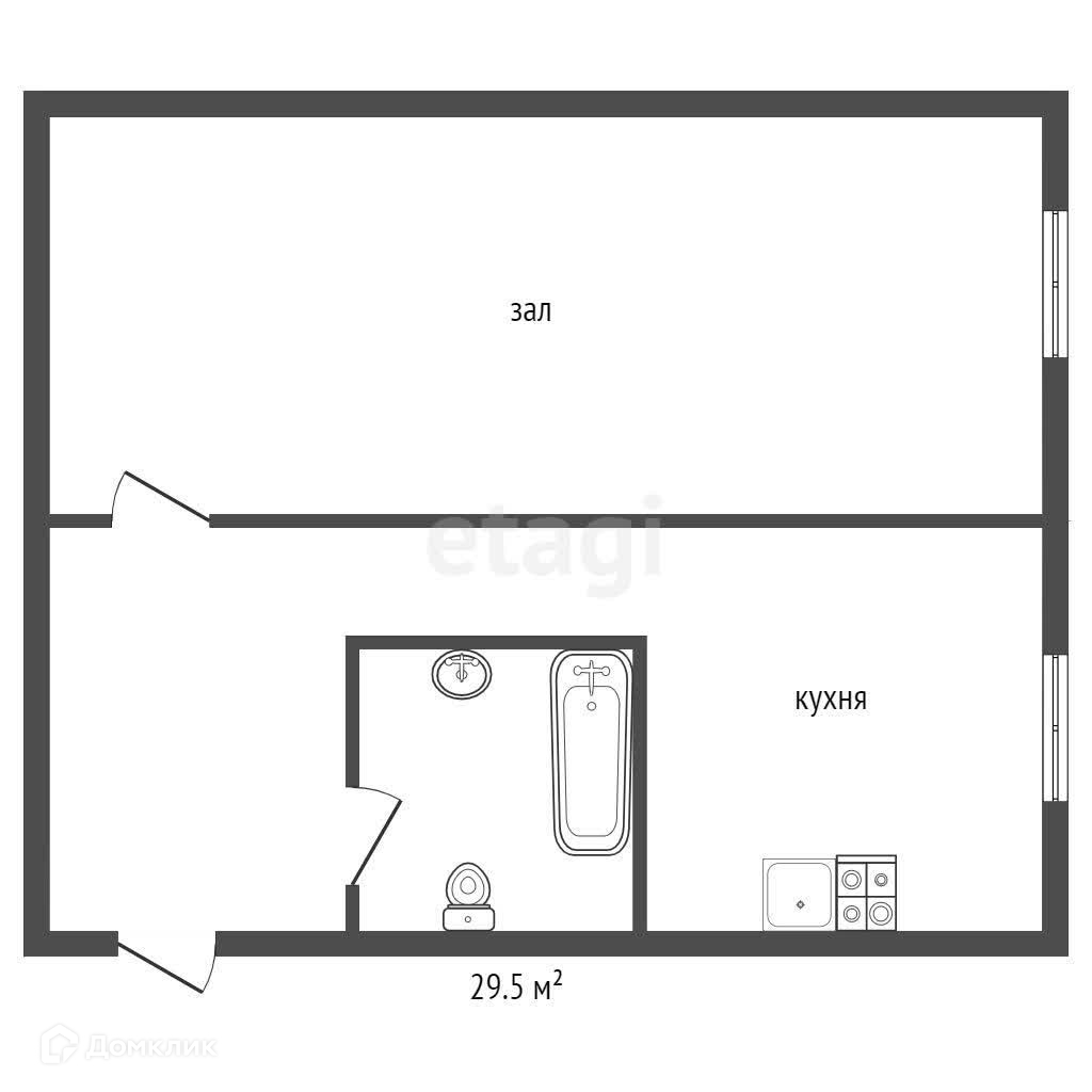 Общая площадь 29.5 м2