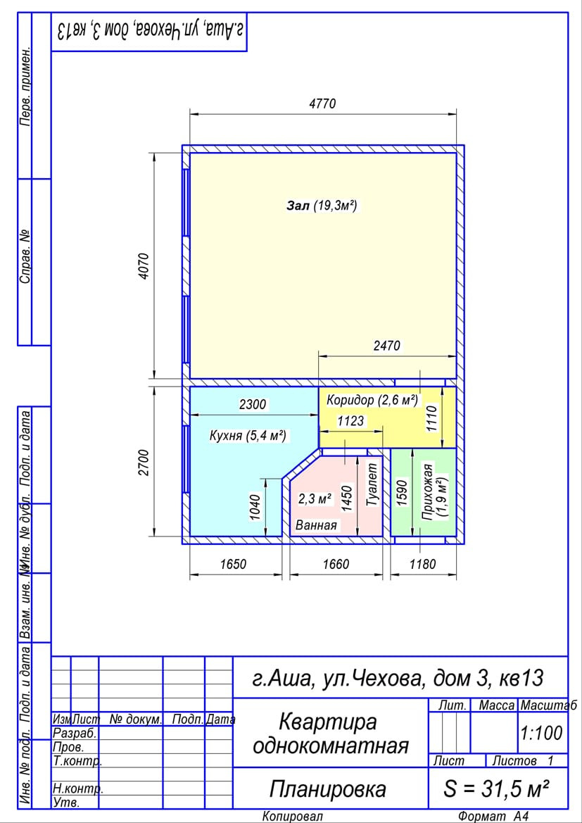 Общая площадь 31.5 м2