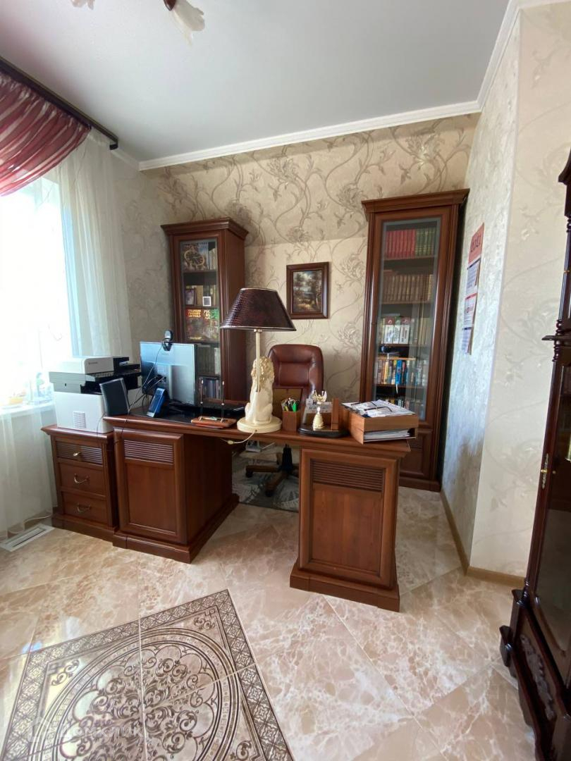 Уникальное предложение по продаже элитного домовладения в черте города у реки Прямая Болда – дом для обеспеченных покупателей, ценителей качества и комфорта. Домовладение представляет собой комплекс из нескольких объектов: 1. Участка с ландшафтным дизайном – 10 соток; 2. Самого дома 300 кв.м., дом построен из кирпича, перекрытия — плиты. Дом оборудован системой видеонаблюдения. 3. На первом этаже находится бойлерная, просторная гардеробная, сан.узел, домашний кинотеатр с отличной шумоизоляцией, отдельный выход во двор. 4. На втором этаже дома находится просторная кухня (с гранитной столешницей), гостиная с камином, гостевая спальная комната с выходом на просторный балкон. 5. На третьем этаже располагается две спальные комнаты, ванная комната, рабочий кабинет, с выходом на просторный балкон. Полы во всем доме – кафель (с функцией теплый пол по всему дому). Лестница выполнена из ценных пород дерева. Дорогостоящие стеклопакеты во всем доме. В доме нет батарей, охлаждение и отопление через специальную систему охлаждения. 6. Во дворе имеется гостевой дом с банным комплексом: кухня, гостиная, гостевая комната, санузел, сауна, душевая с купелью. Так же во дворе имеется зона барбекю, просторная беседка с функцией затуманивания, большой встроенный бассейн. 7. Гараж теплый на 2 машины мастерская, уличный санузел.