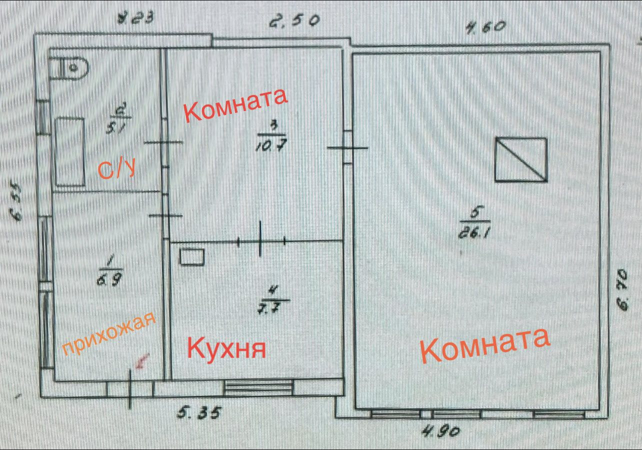 Общая площадь 56.5 м2