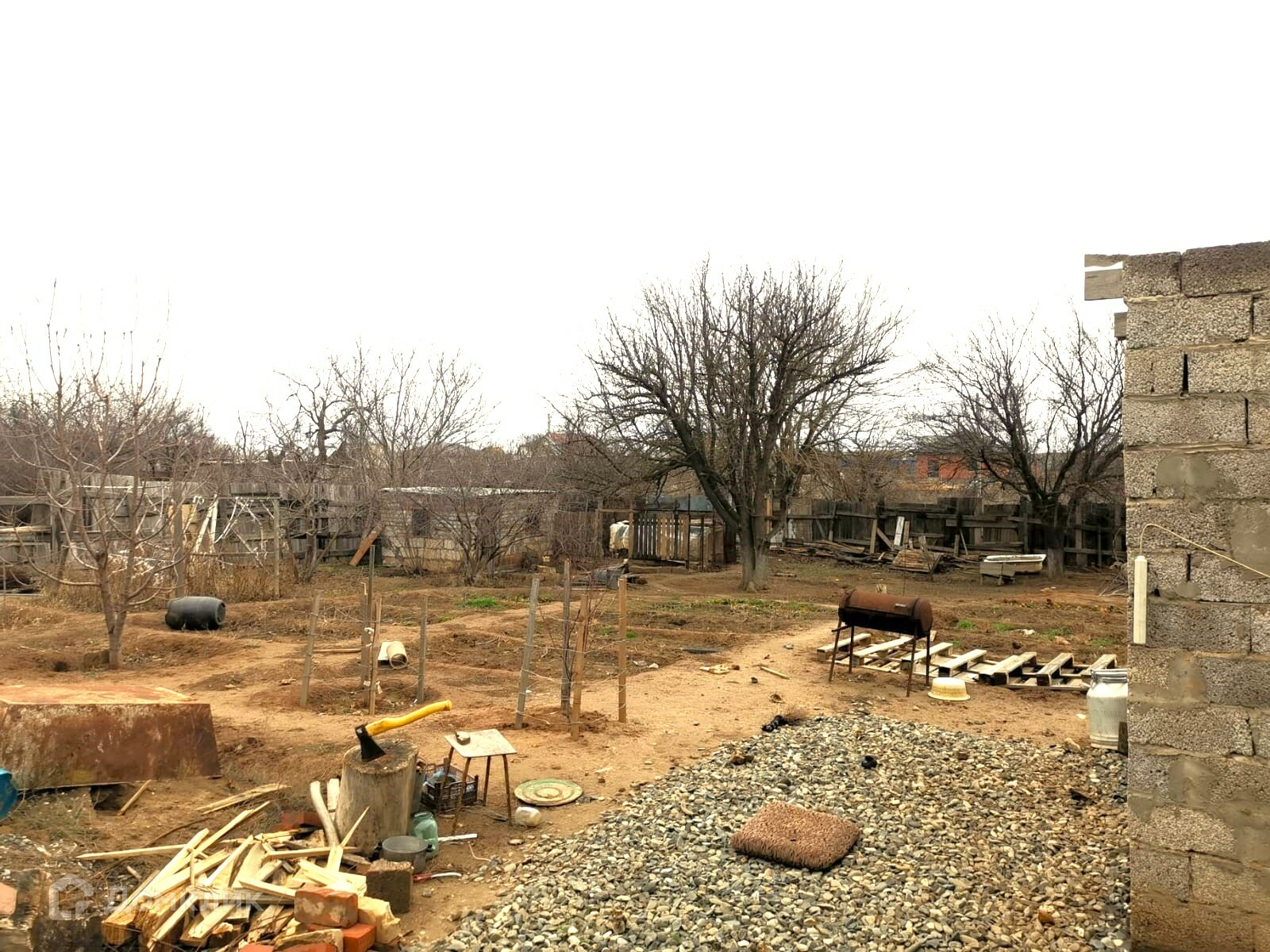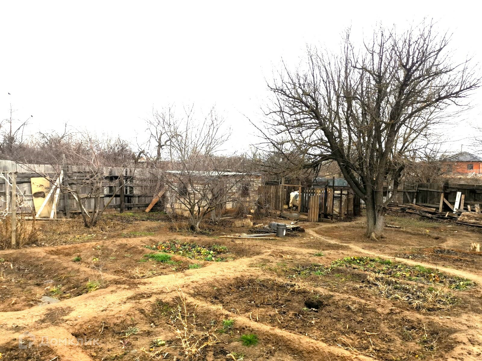 На участке есть плодово-ягодные деревья, малина, клубника, огород, сарай из силикатных блоков.
