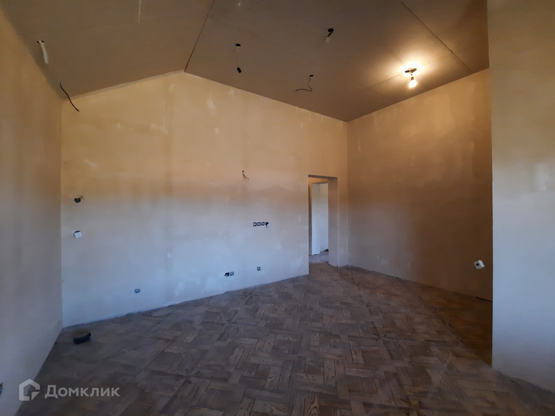 Дом: терраса с главного фасада, прихожая, кухня 20 кв.м., три спальни 10,7 кв.м., 9,7 кв.м., 8,6 кв.м., гостиная 23,4 кв.м. с объемным остеклением и выходом на 2ю террасу, санузел с душевой и парной (возможно иное использование бытовых помещений), гостевой санузел, котельная с отдельным входом со двора. Высота потолков 3,3 м.