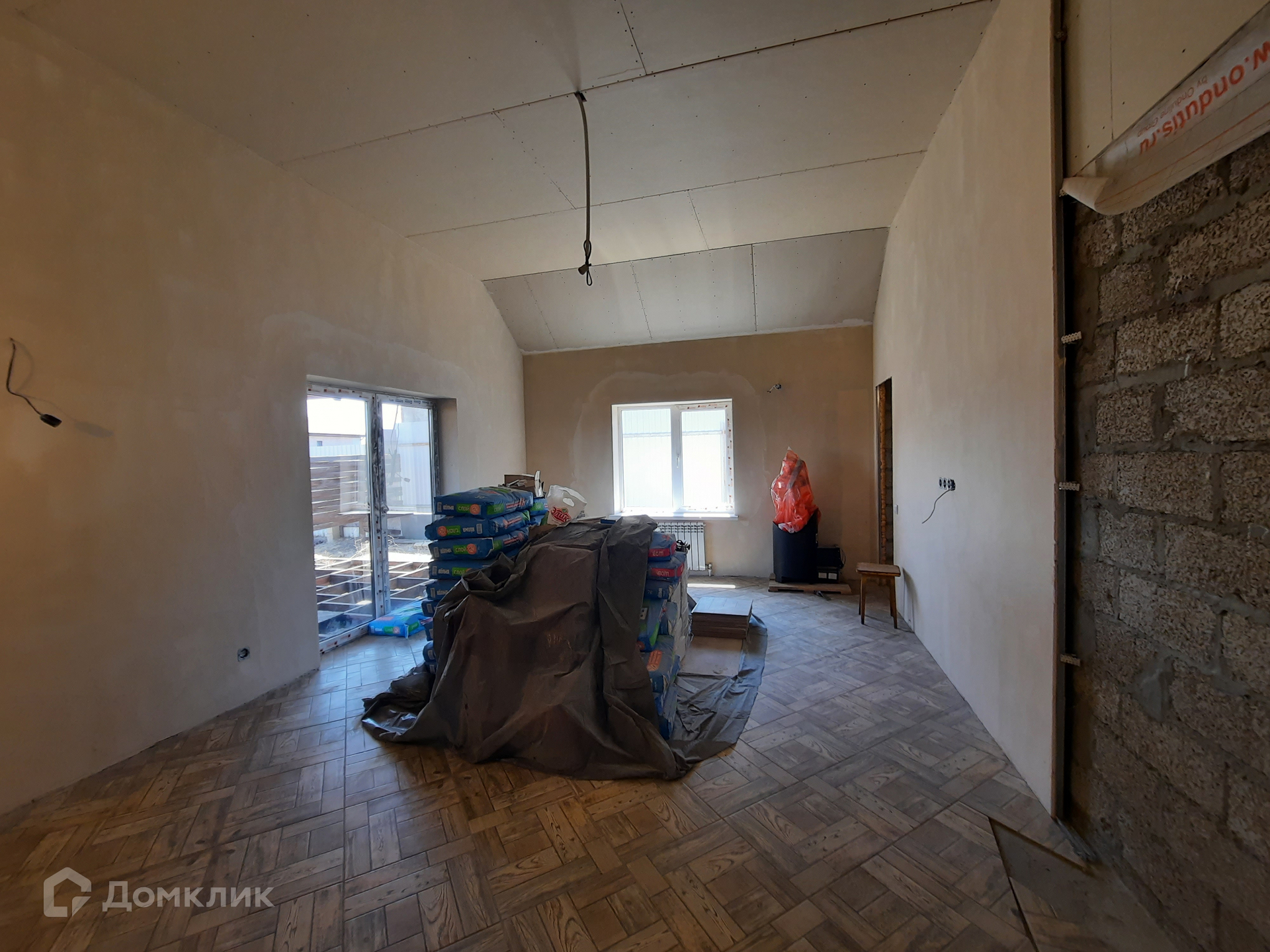 Продается новый одноэтажный дом с двумя террасами общей площадью 172,2 кв.м. на участке 442 кв.м. в современном охраняемом коттеджном поселке "Конвертово" вблизи Тополиной рощи, Ленинский район города. Поселок закрытого типа на 65 домовладений, оснащен КПП, активно застраиваемый, с большим количеством уже проживающих соседей, благоустроенный зелеными насаждениями, асфальтированными дорогами и собственным выходом к реке (протока Кривая Болда) через лес! Дом, предлагаемый к продаже, готов на 80%! Выполнена предчистовая отделка с разводкой электрики, предусмотрен "теплый пол" по всему периметру (выложен керамогранитом) и хамам, к участку подведены все коммуникации. Закуплены материалы и сантехника на отделку санузла, печь под парную, террасная доска для уличной лаунж-зоны.