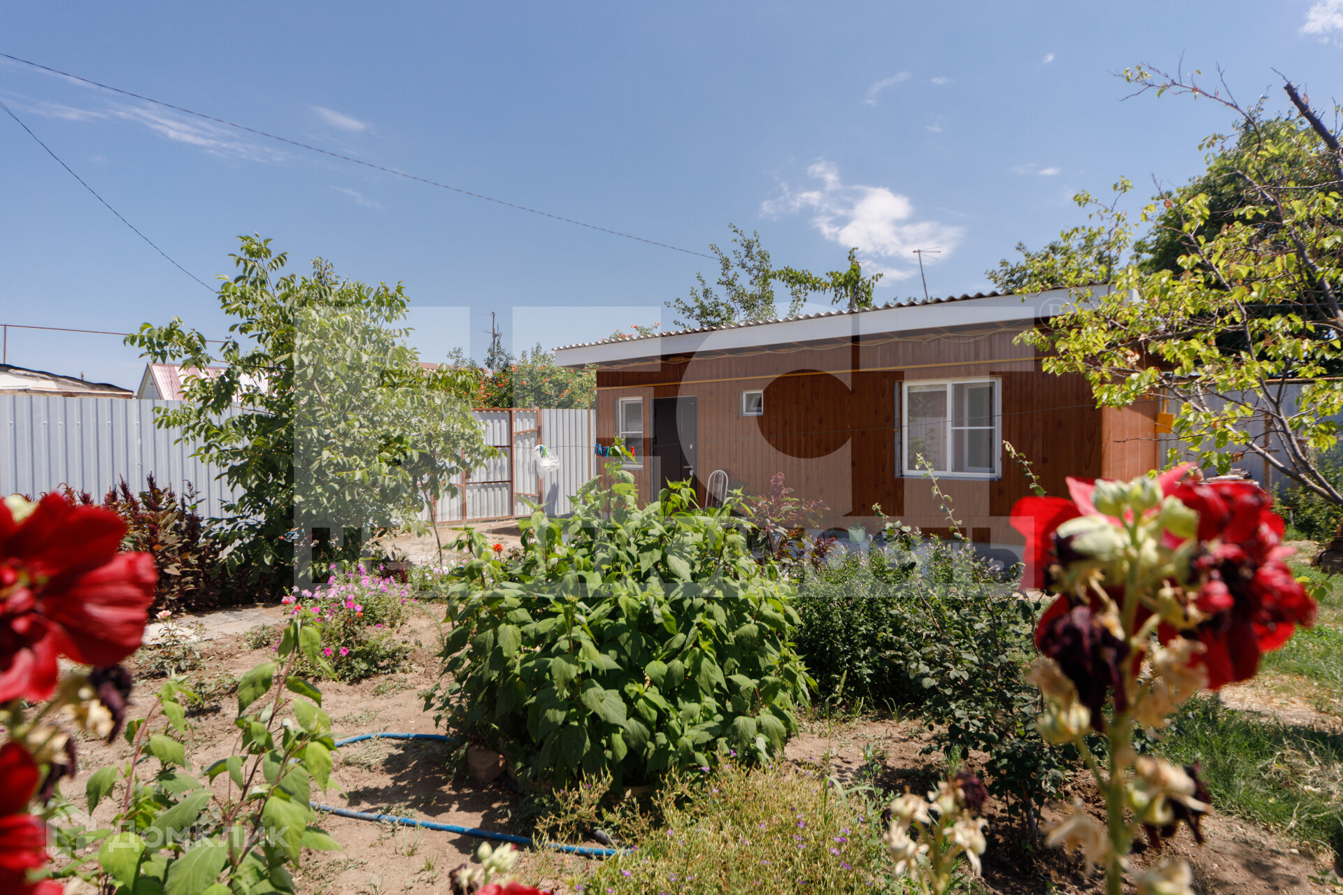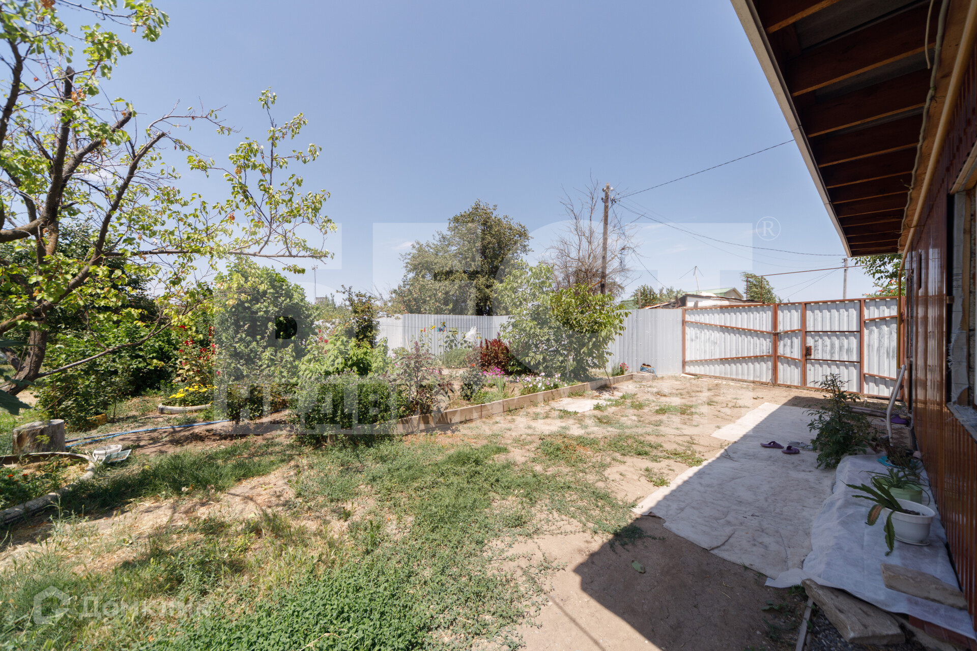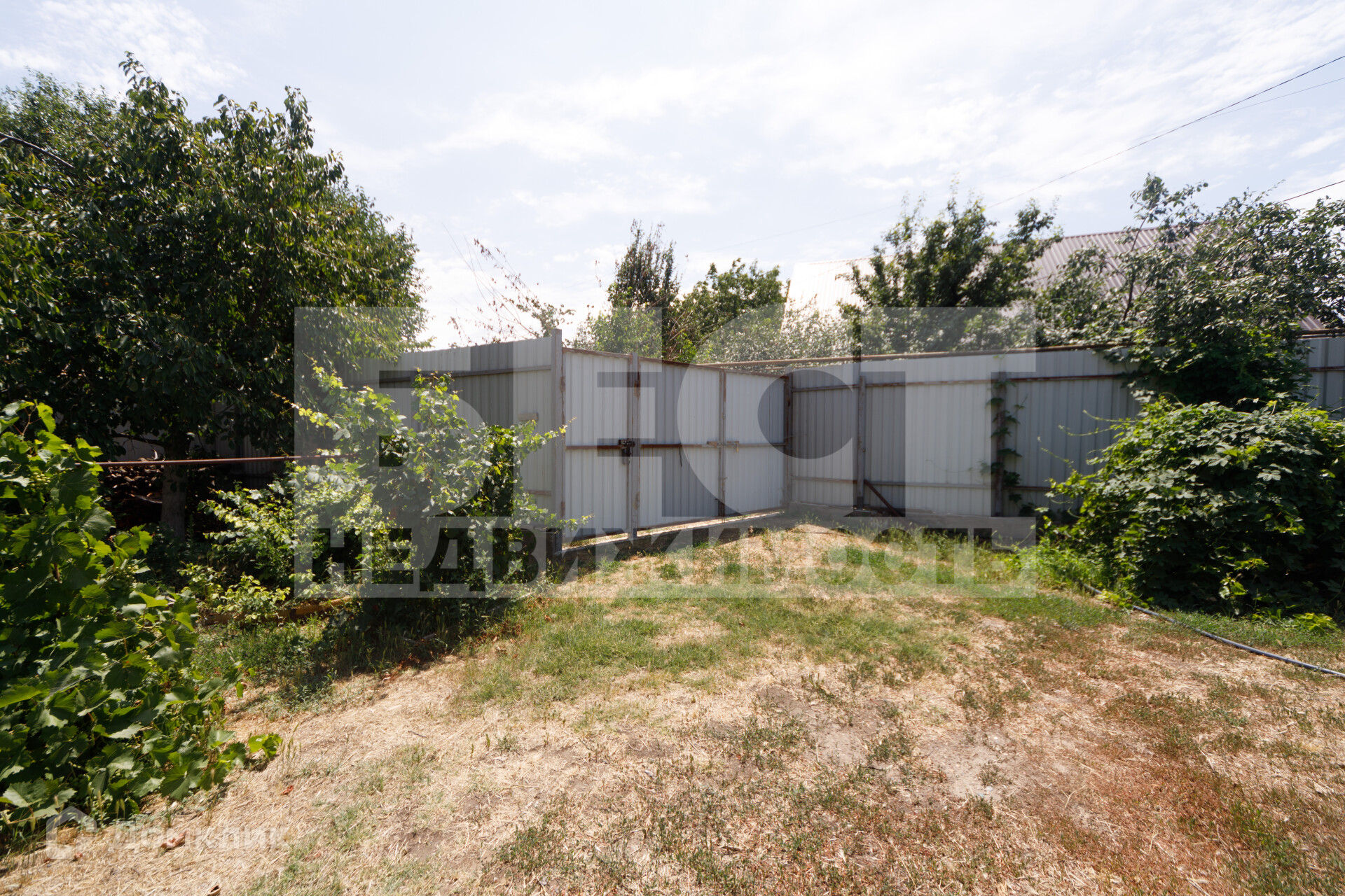 Участок огорожен металлическим забором с воротами для заезда автомобиля (ворота с двух сторон подъездных путей). Большой плодоносный зем. участок, во дворе растет множество фруктовых деревьев, цветов.