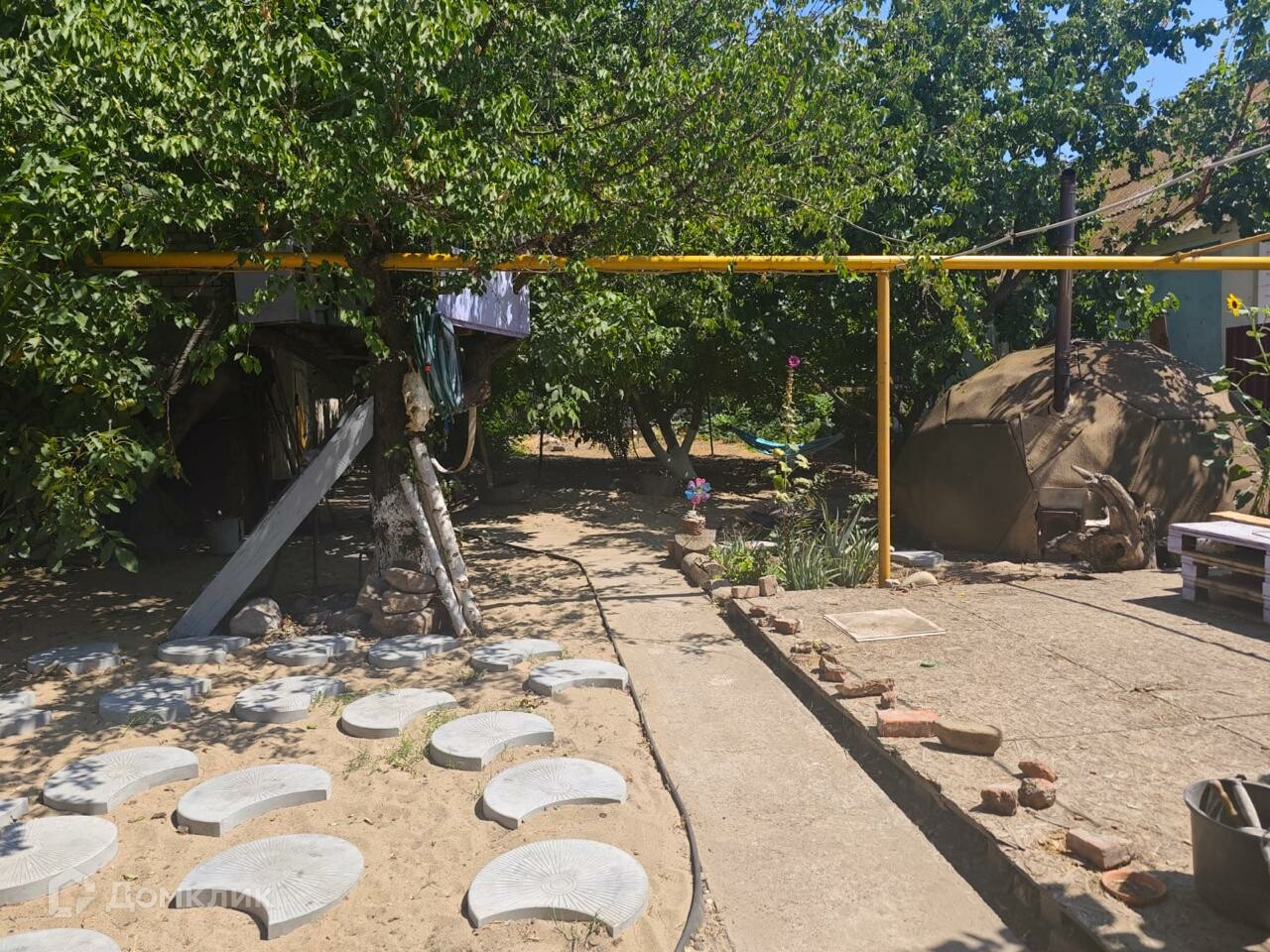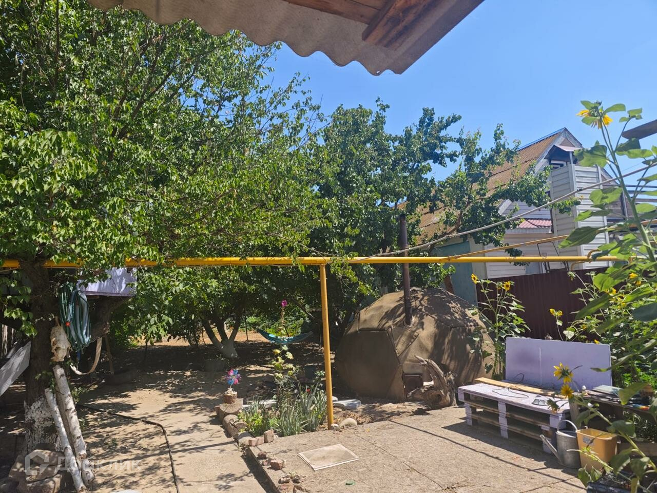 На участке в 4,5 сотки, есть небольшая эко баня, несколько плодовых деревьев на одном из которых расположен домик для досуга детей, также есть возможность установить небольшую детскую площадку или беседку.
