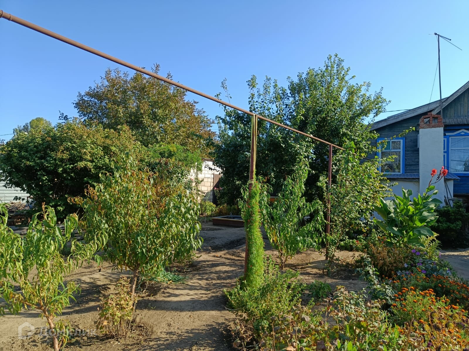Во дворе плодовые деревья, кустарники; а также декоративные растения. Персики, груши, сливы, яблоки, вишня, малина и множество другого!
