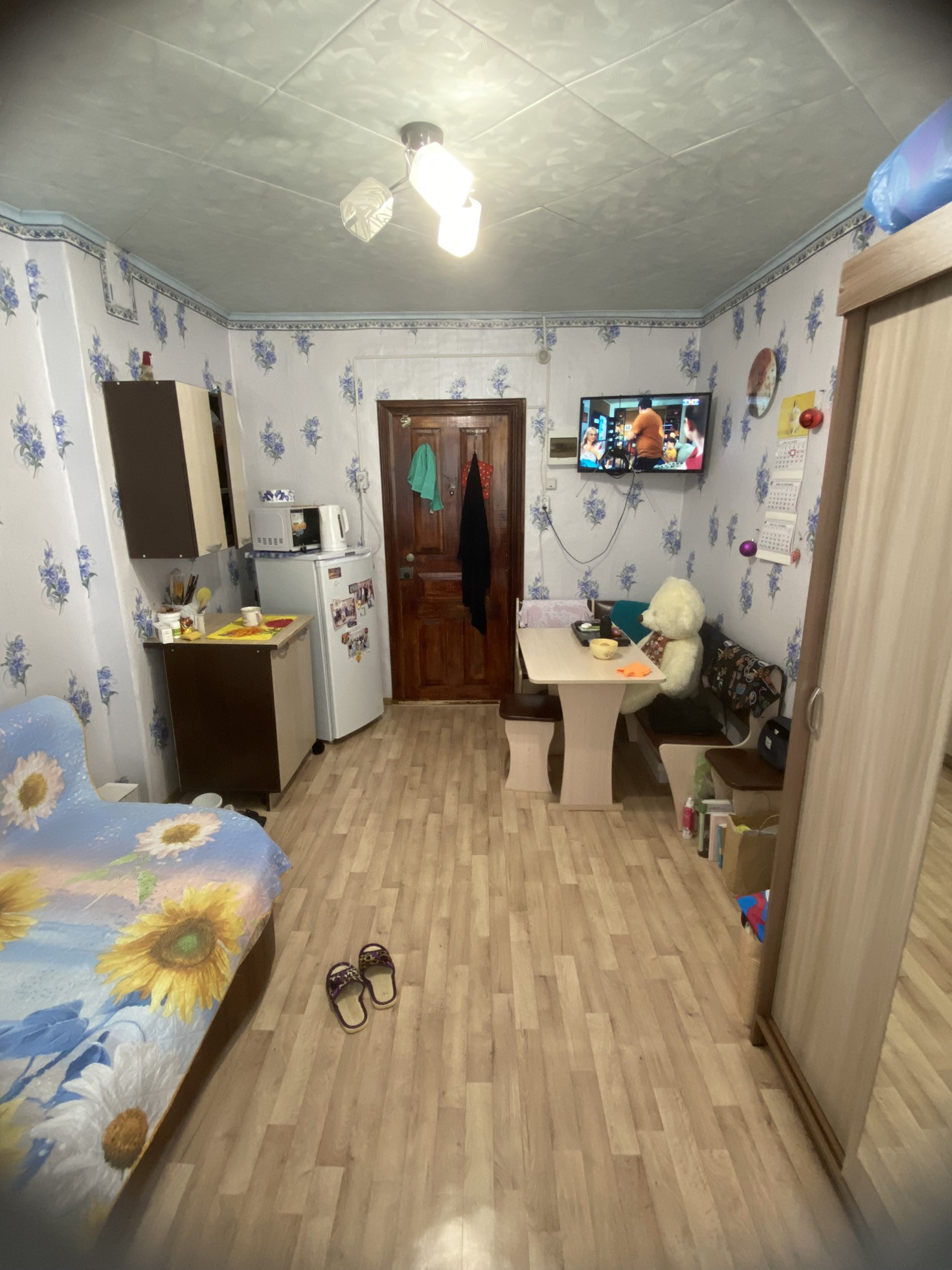 Продаю комнату собственник, косметический ремонт, в комнате остается сплит система, шкаф для вещей, шкаф для посуды верхний нижний, холодильник, кухонный уголок со столом и стульями. Окно пластиковое. Дом в хорошем состоянии вошел в программу капитального ремонта, в секции всегда чисто убираются по очереди, секция из 5 комнат, соседи тихие семейные взрослые пары. Душ туалет общий. Торг. Будет поменяна сантехника и электричество в секции.