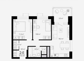 Двухкомнатная квартира на продажу, 56.9 м2, улица Бехтерева, 12/4