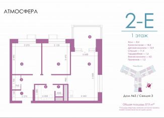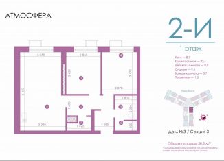 2-ком. квартира на продажу, 58.2 м2, улица Бехтерева, 12/4