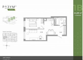 Продажа однокомнатной квартиры, 44.7 м2, Боевая улица, 132с3