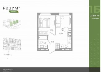 1-комнатная квартира на продажу, 31.9 м2, Боевая улица, 132с3