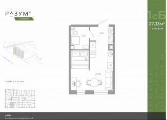 Квартира на продажу студия, 27.4 м2, Минусинская улица, 8Г