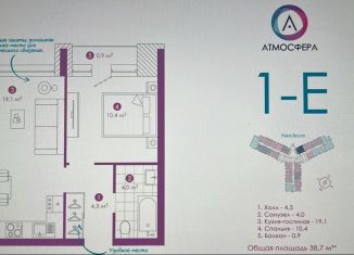 Общая площадь: 38.5 м2