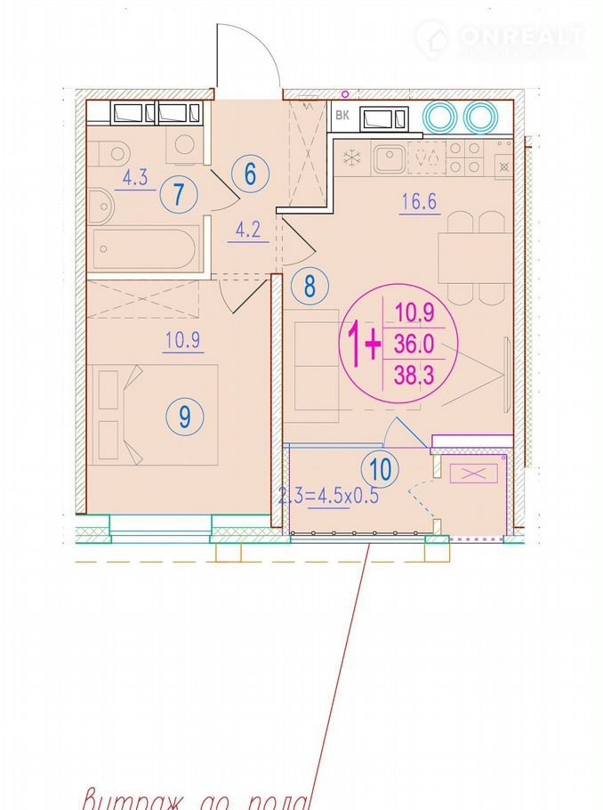 Балкон, лоджия 1 лоджия
