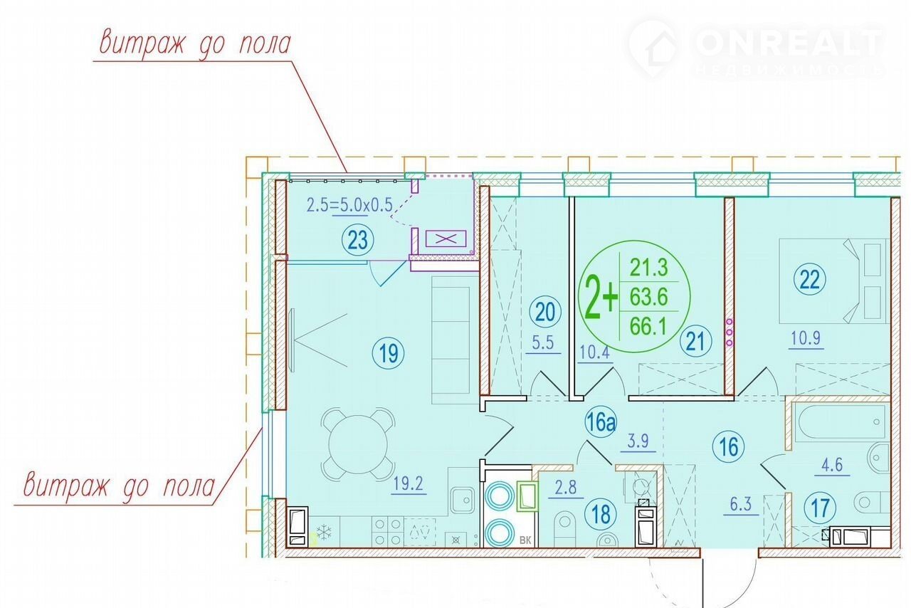 Общая площадь 66.1 м2