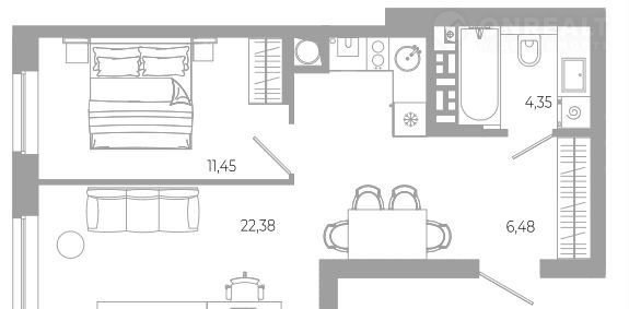 Общая площадь 44.7 м2
