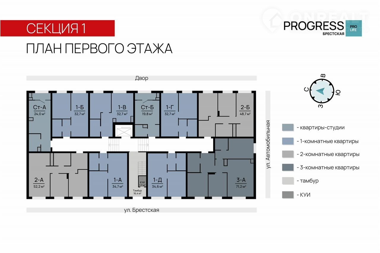 Квартал «РRОGRЕSS Брестская» расположен в микрорайоне Автогородок на улице Брестская. Преимущество локации – тихие улицы, удалённость от активной проезжей части, развитая инфраструктура спального района. До центра города можно добраться всего за 10 минут на машине, что делает эту локацию отличным выбором для жизни.