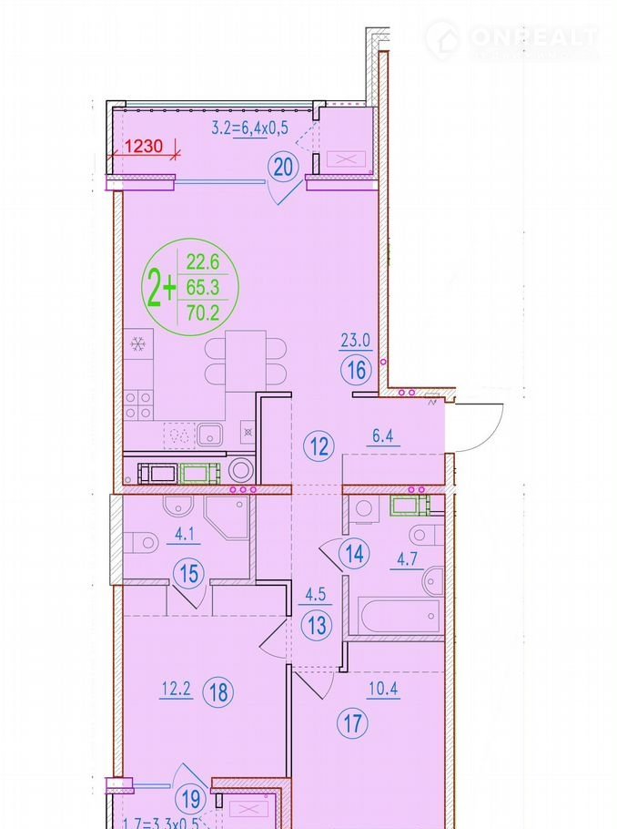 Общая площадь 70.2 м2