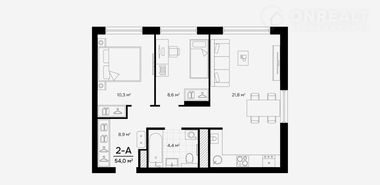 Общая площадь 54 м2