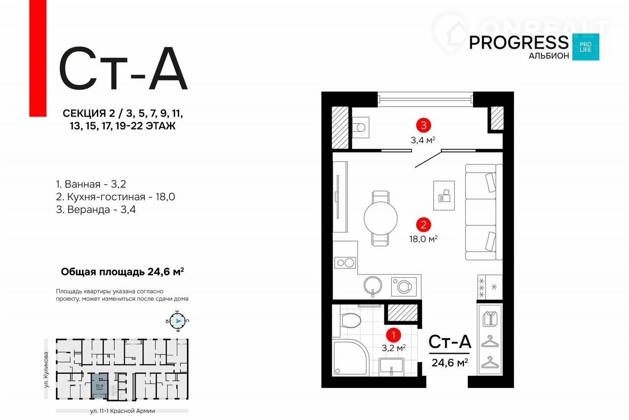 Общая площадь 24.6 м2