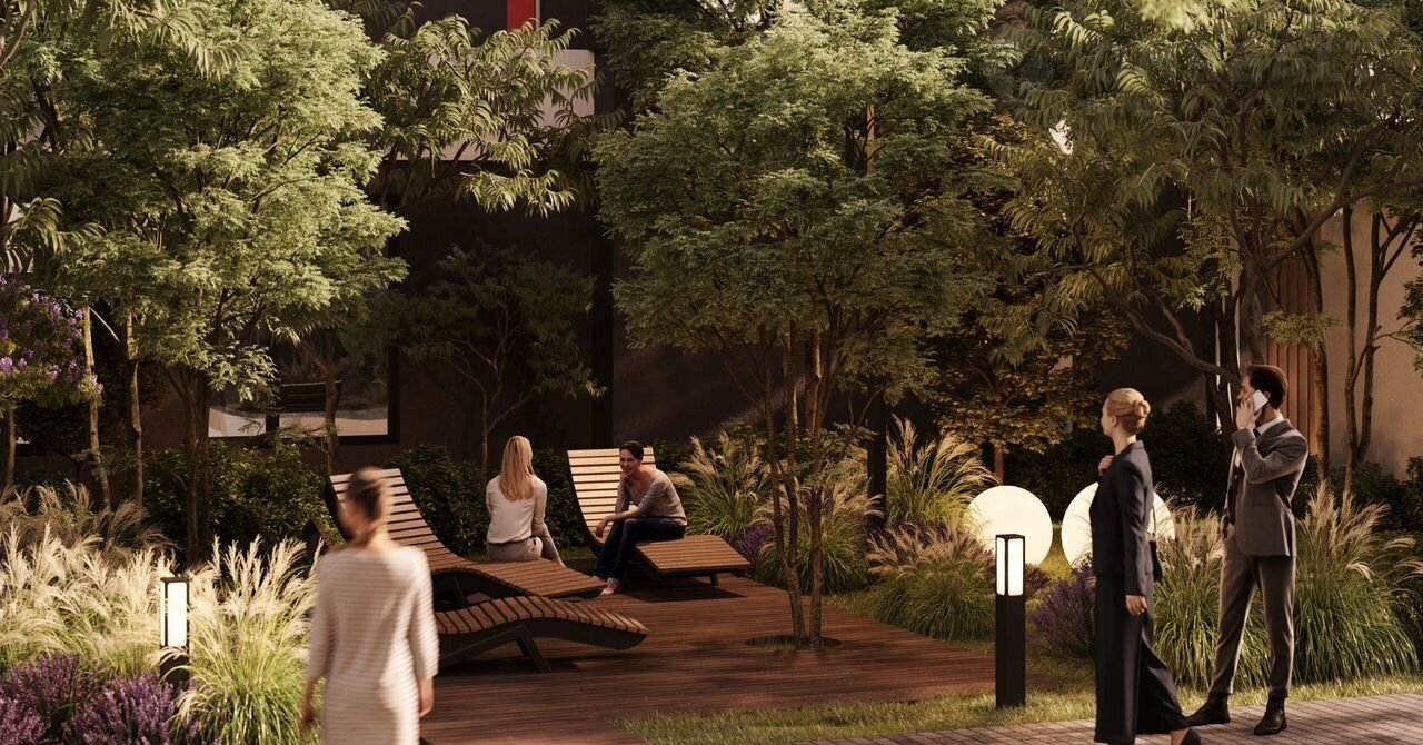 Жилой комплекс создан для удобного и приятного отдыха. На придомовой территории находятся: сhillоut-зоны с гамаками, wоrkоut-пространство, игровые площадки для детей и подростков. Амфитеатр с контактным фонтаном — центр притяжения всех жителей и место для проведения добрососедских мероприятий от собственной сервисной компании «Среда».