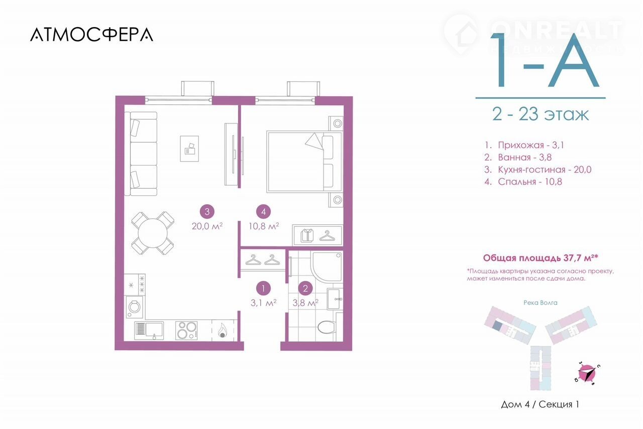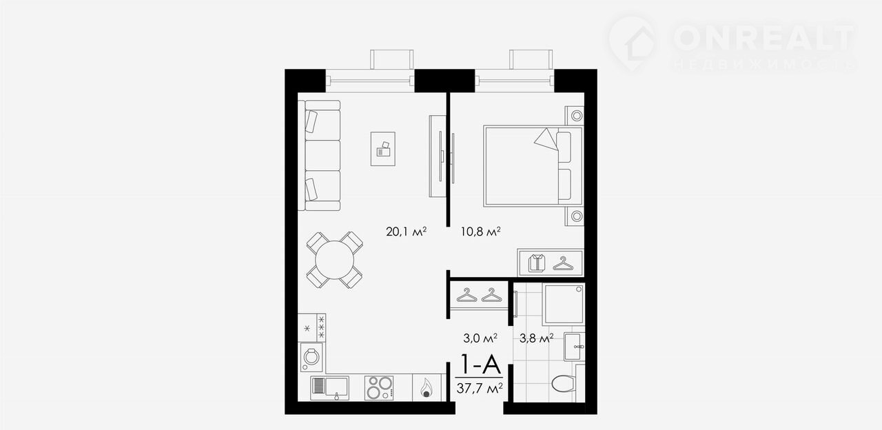 Общая площадь 37.7 м2