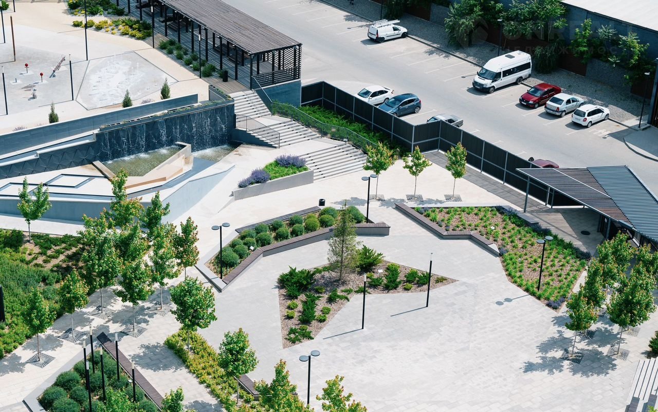 5 детских площадок, включающих в себя интерактивный ручеёк и автодром
